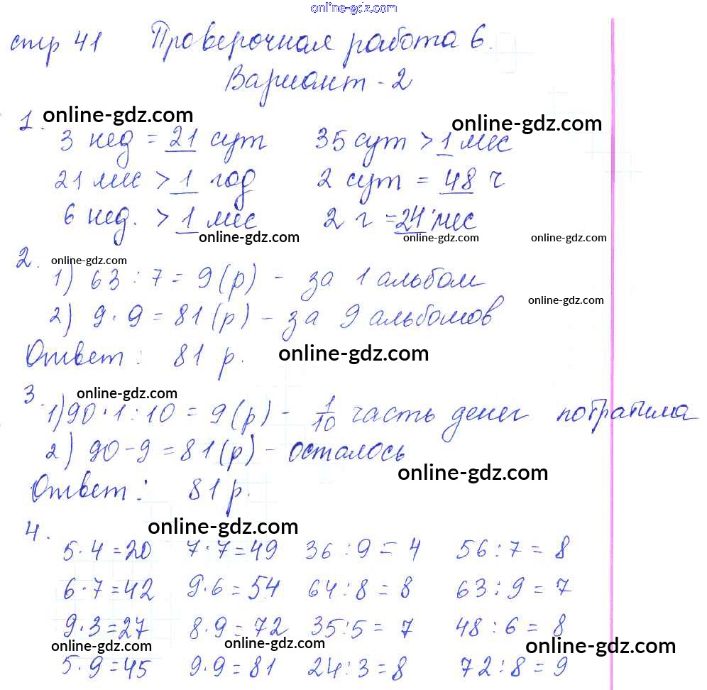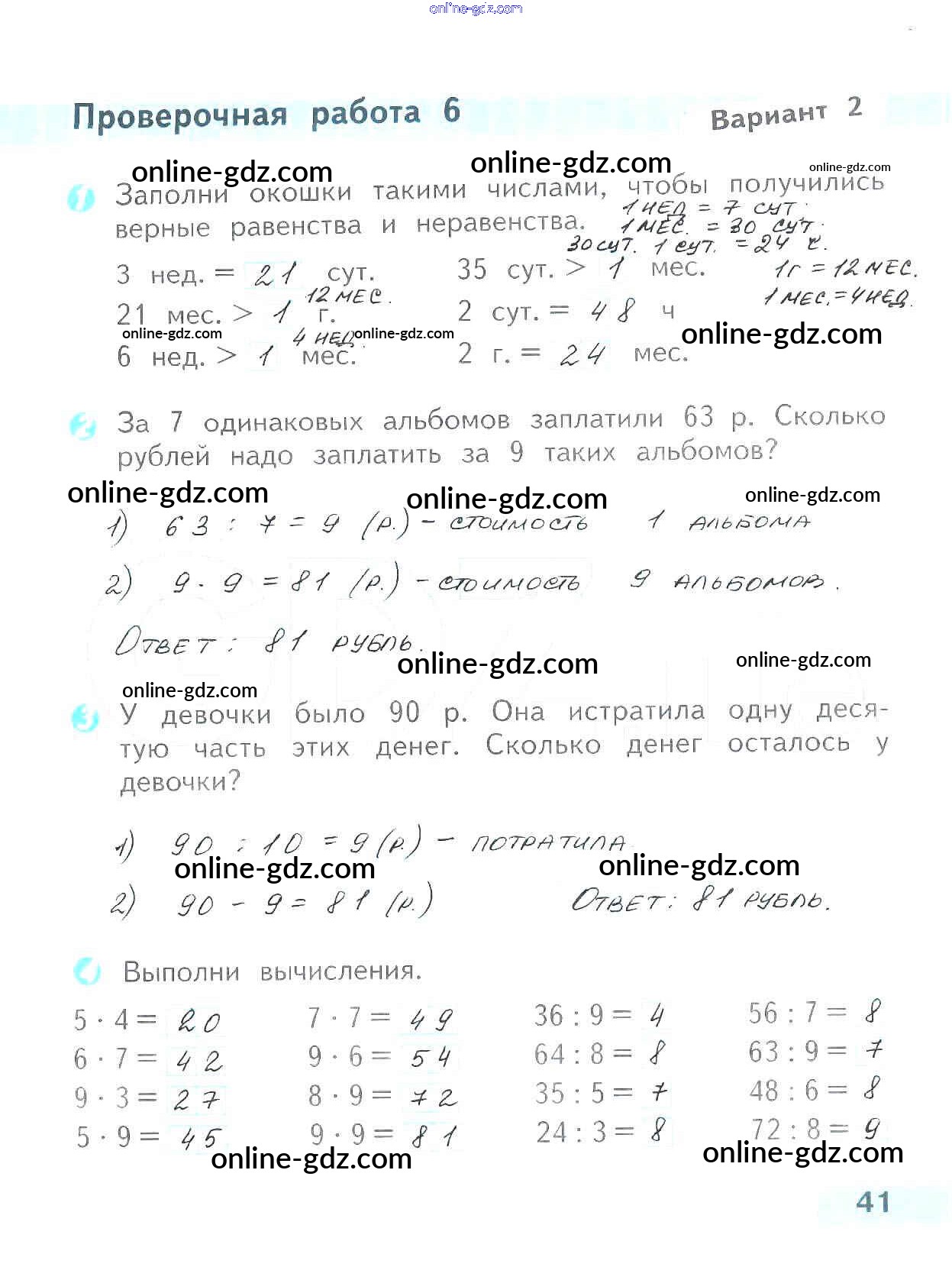 Готовые домашние задания по Математике за 3 класс Проверочные работы Волкова Школа России 2014 - Страницы 41
