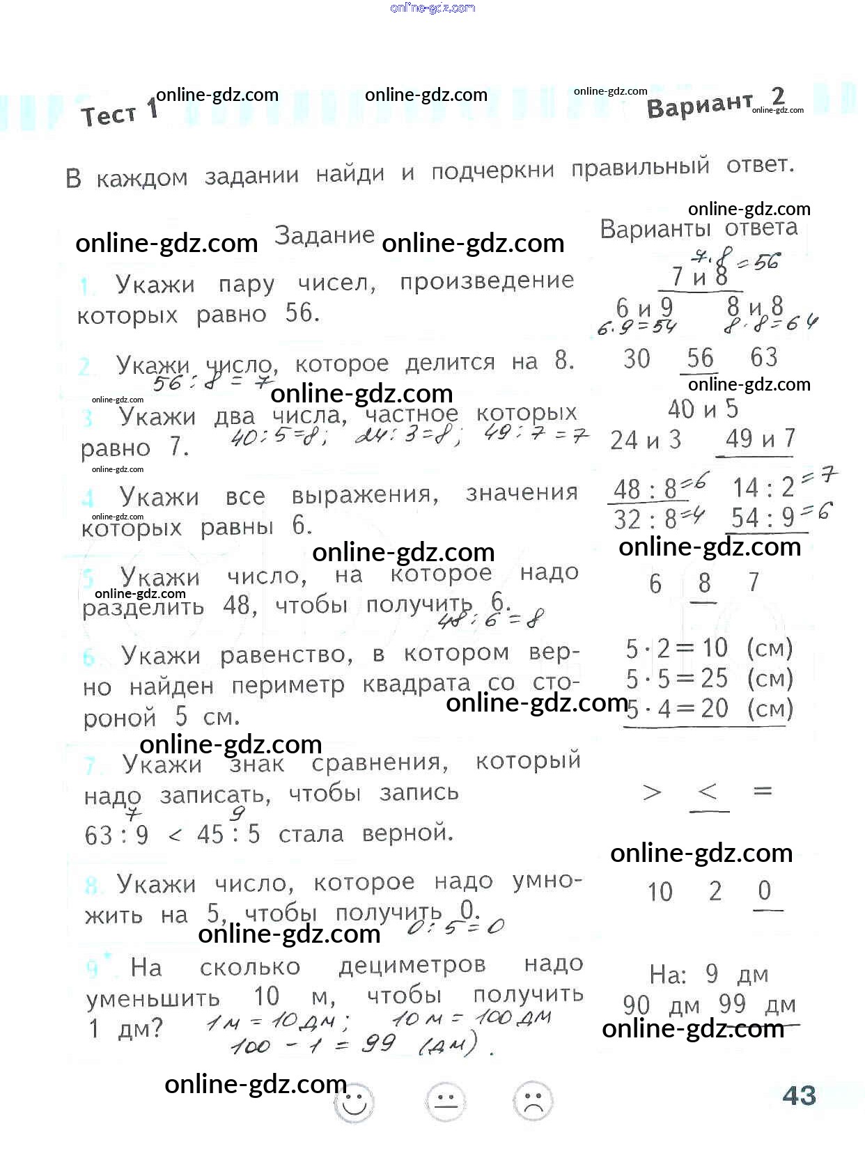 Готовые домашние задания по Математике за 3 класс Проверочные работы Волкова Школа России 2014 - Страницы 43