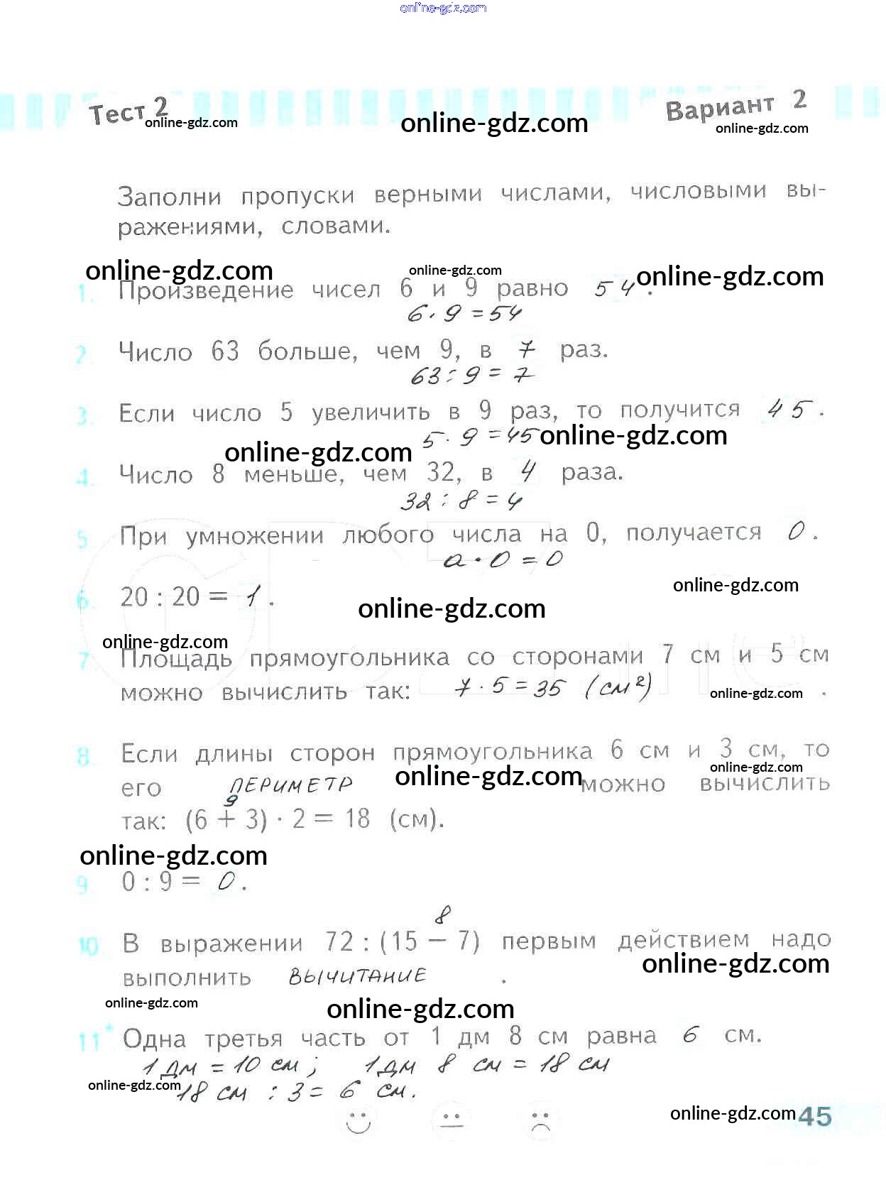 Готовые домашние задания по Математике за 3 класс Проверочные работы Волкова Школа России 2014 - Страницы 45