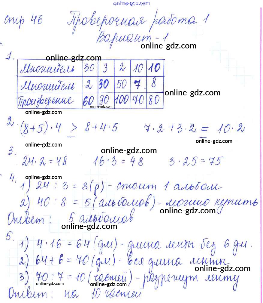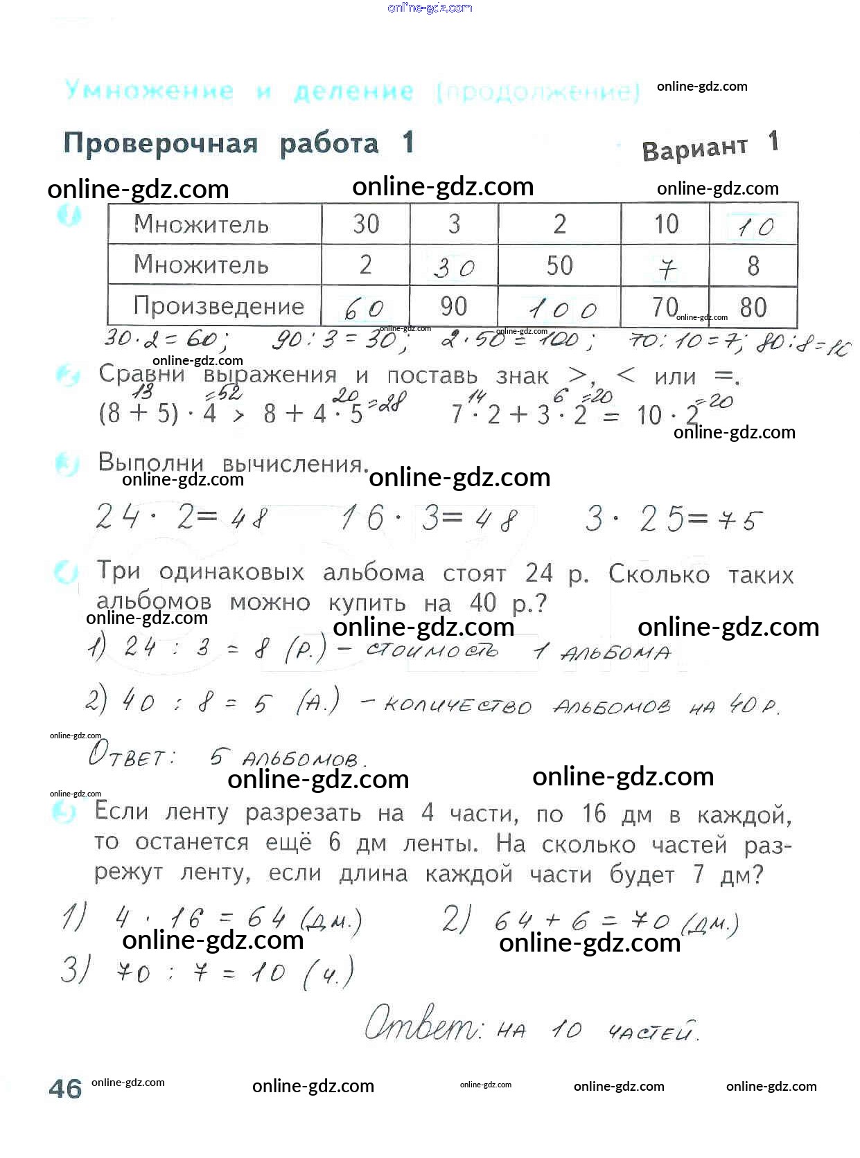 Готовые домашние задания по Математике за 3 класс Проверочные работы Волкова Школа России 2014 - Страницы 46