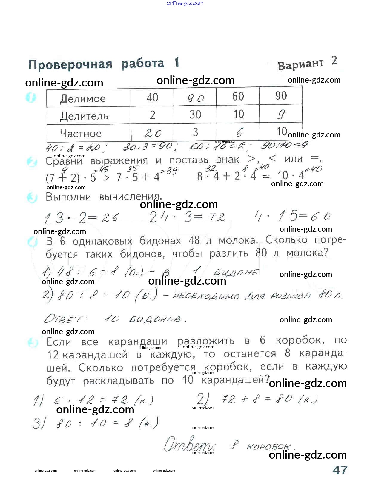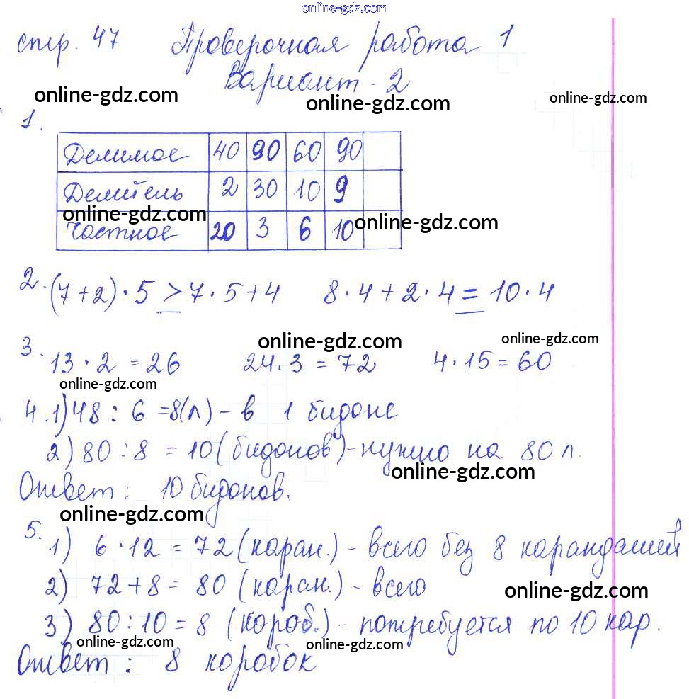 Готовые домашние задания по Математике за 3 класс Проверочные работы Волкова Школа России 2014 - Страницы 47