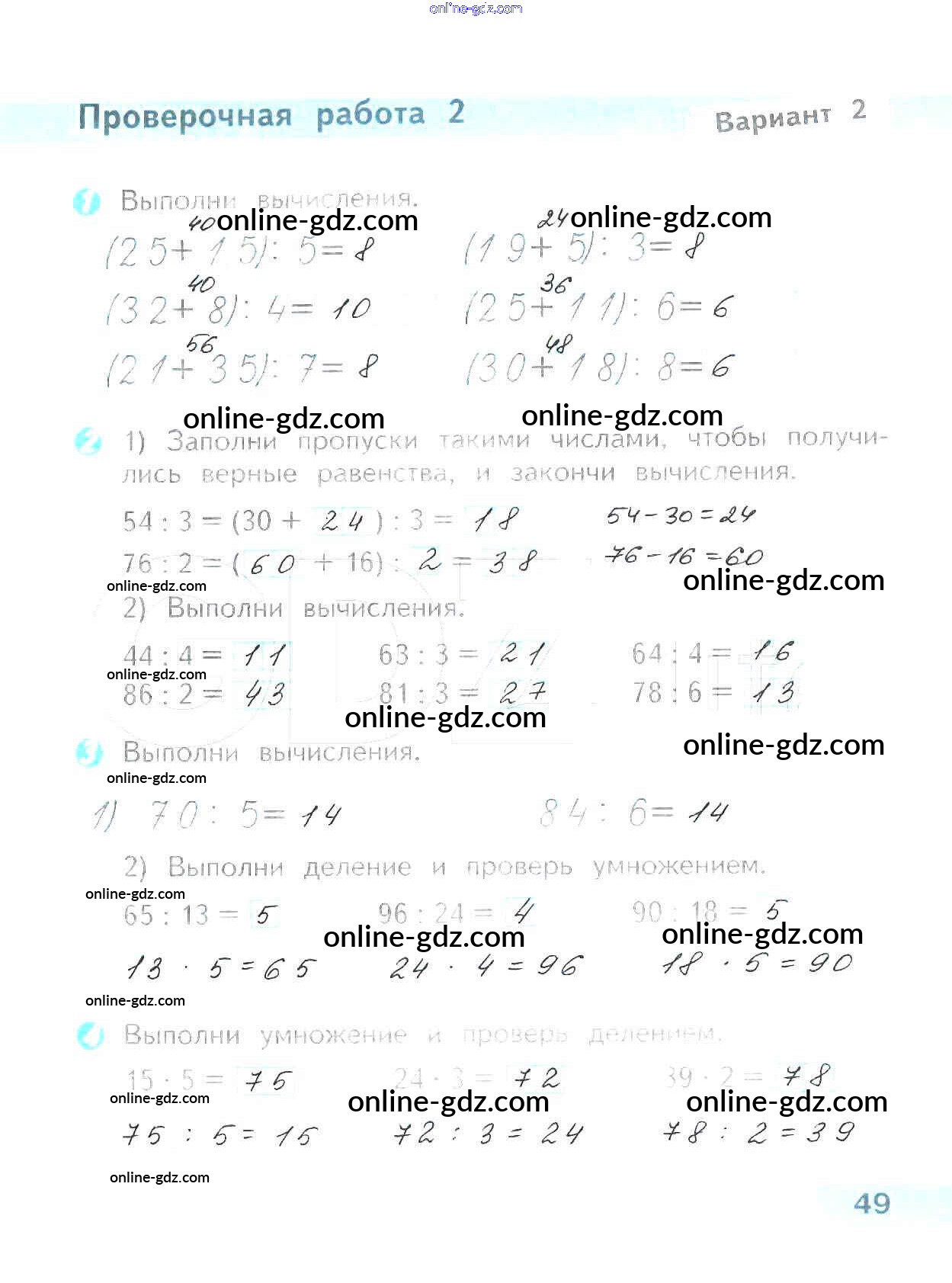 Готовые домашние задания по Математике за 3 класс Проверочные работы Волкова Школа России 2014 - Страницы 49