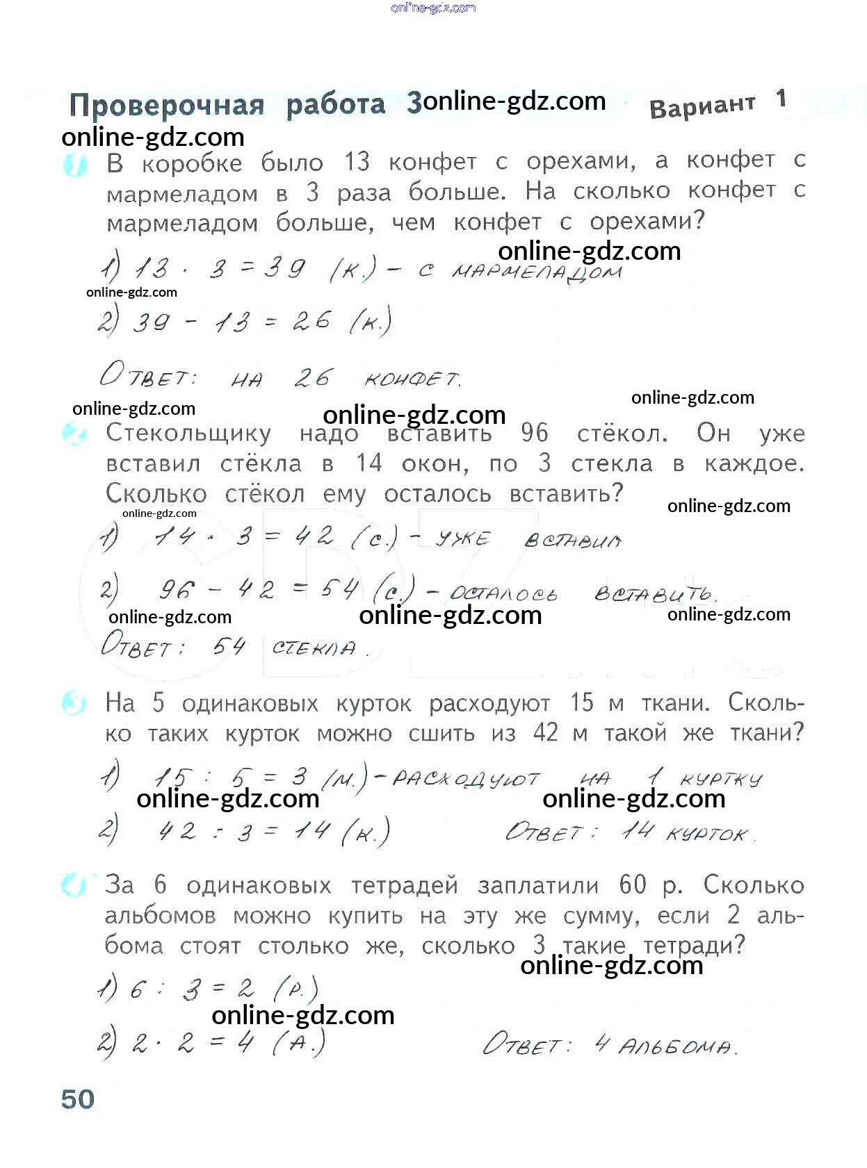 Готовые домашние задания по Математике за 3 класс Проверочные работы Волкова Школа России 2014 - Страницы 50