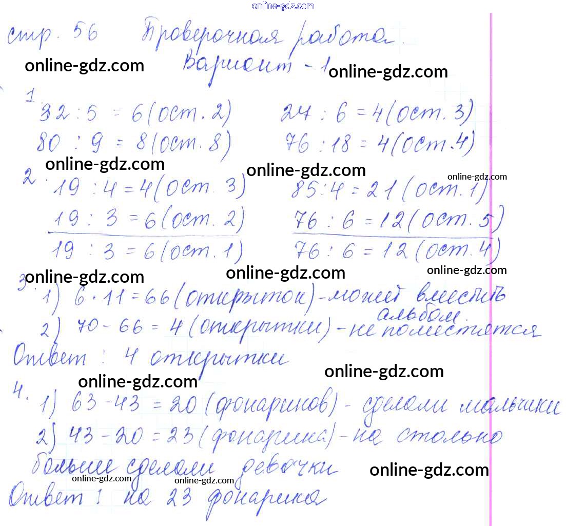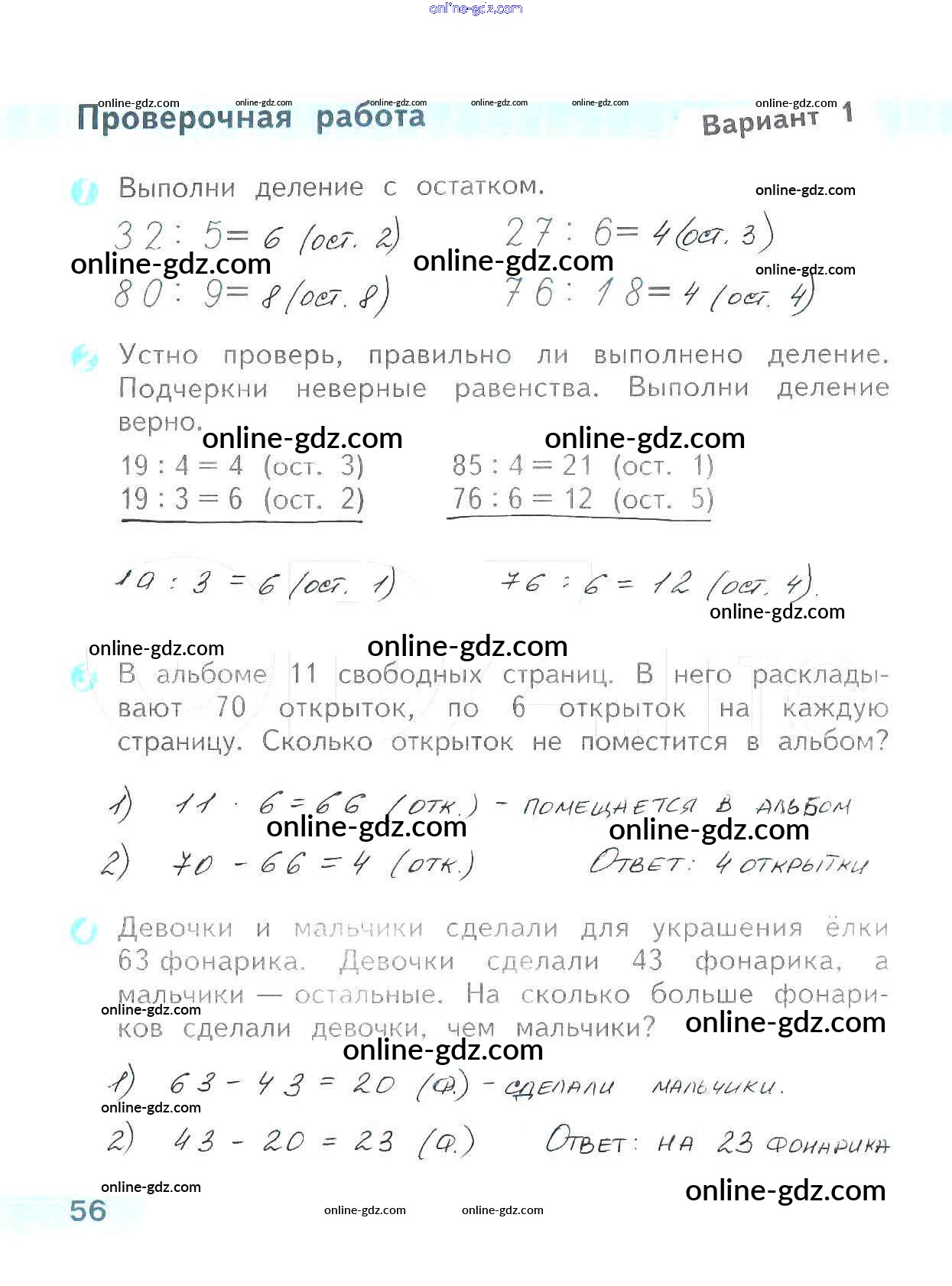 Готовые домашние задания по Математике за 3 класс Проверочные работы Волкова Школа России 2014 - Страницы 56