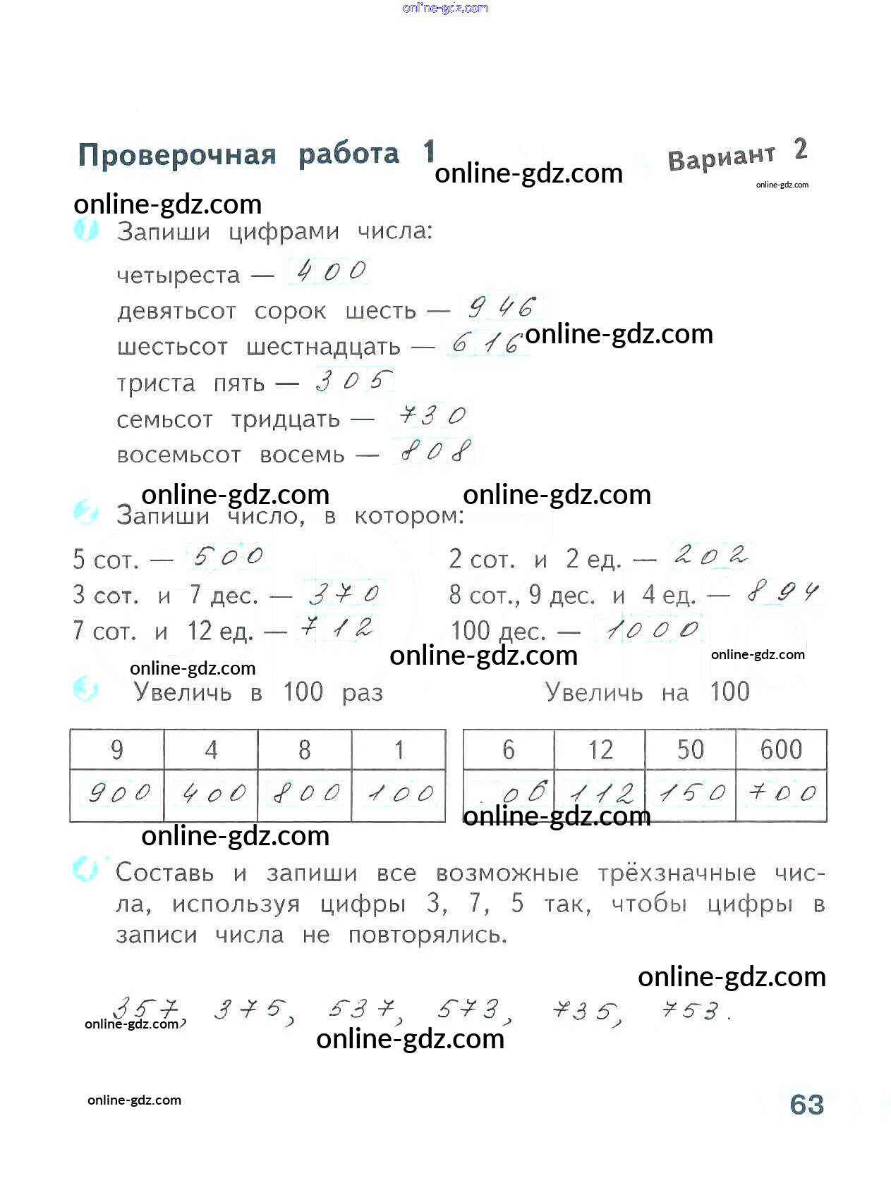 Готовые домашние задания по Математике за 3 класс Проверочные работы Волкова Школа России 2014 - Страницы 63