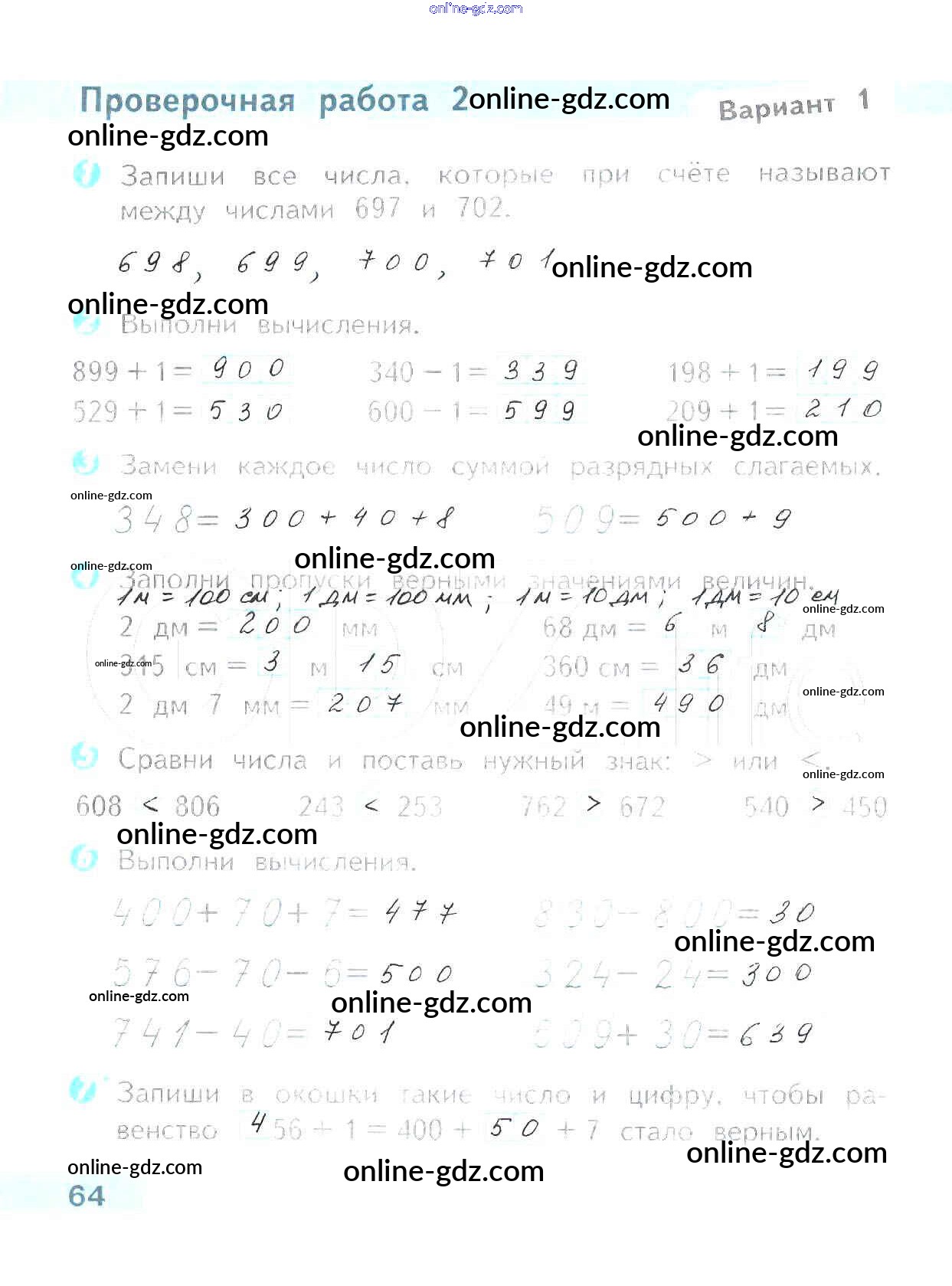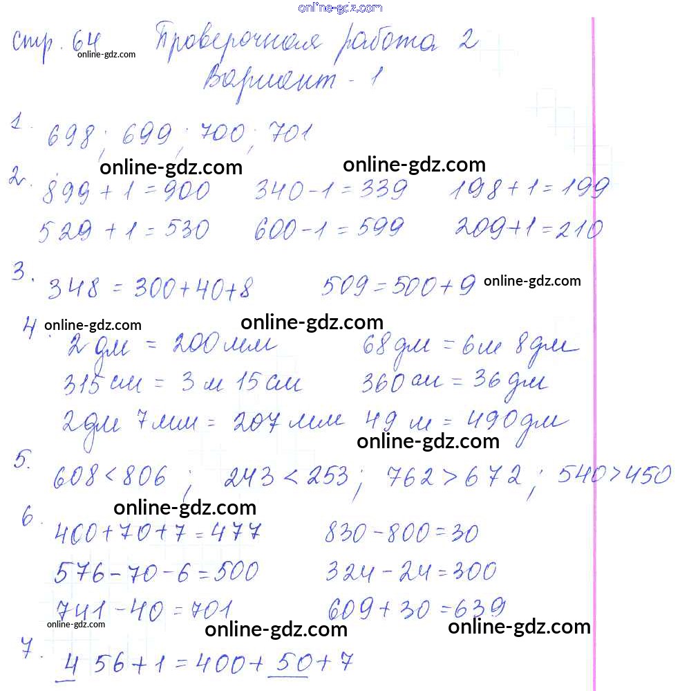 Готовые домашние задания по Математике за 3 класс Проверочные работы Волкова Школа России 2014 - Страницы 64