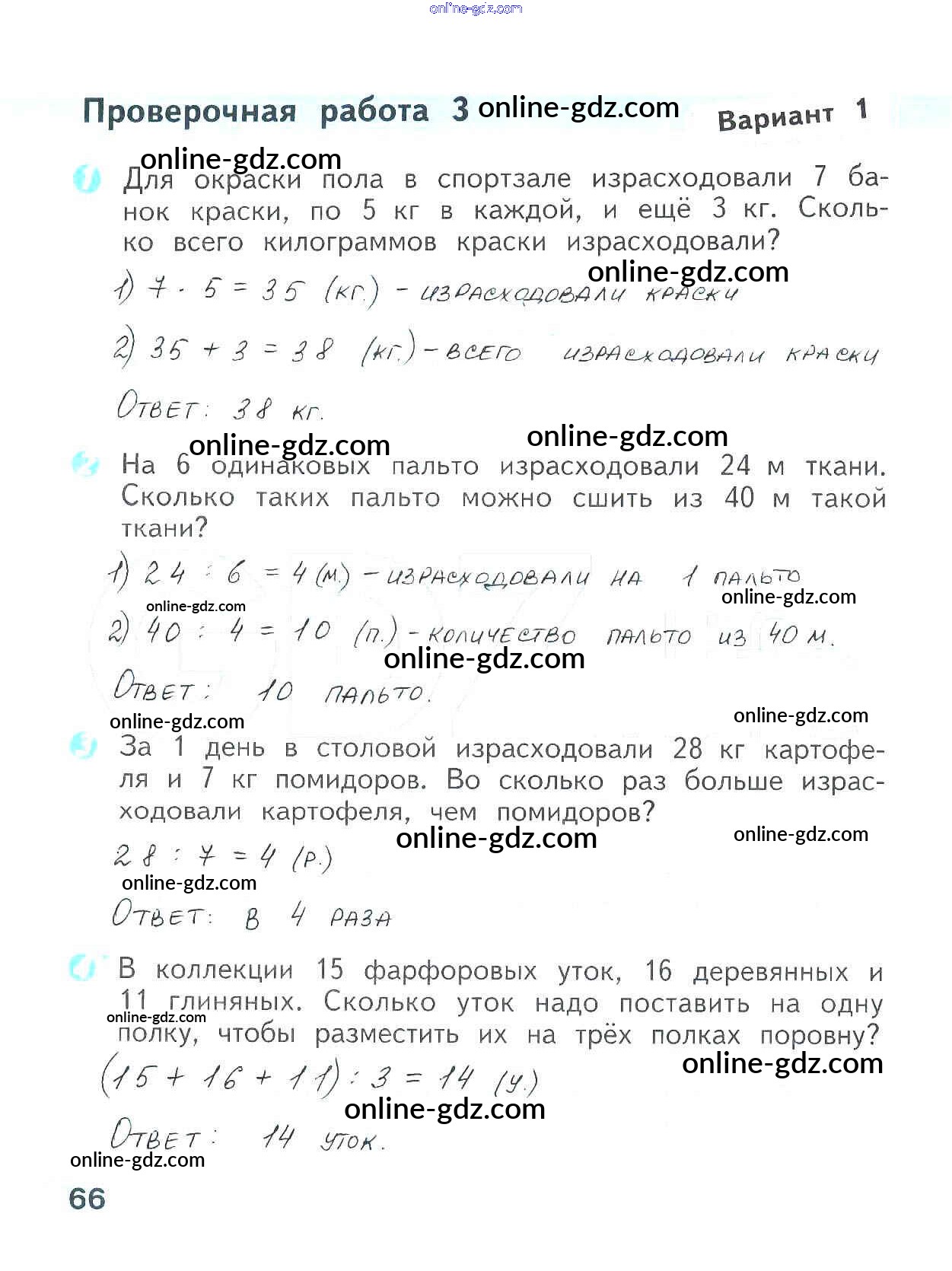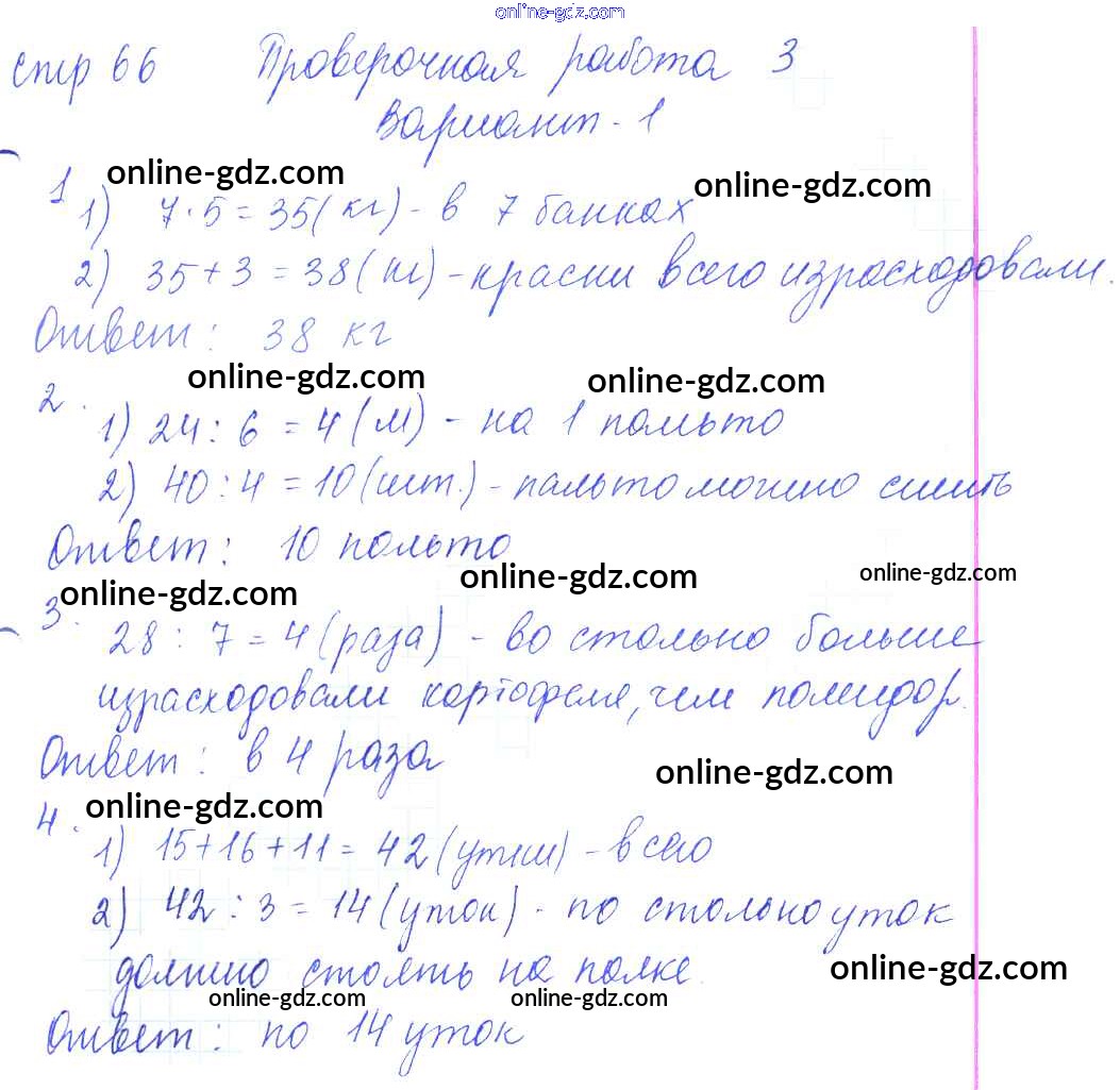 Готовые домашние задания по Математике за 3 класс Проверочные работы Волкова Школа России 2014 - Страницы 66