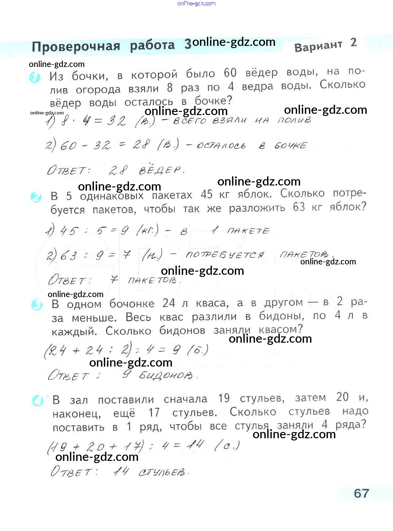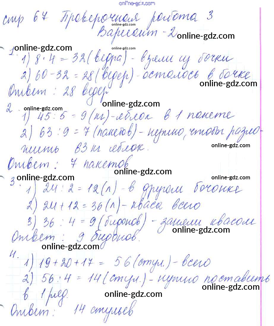 Готовые домашние задания по Математике за 3 класс Проверочные работы Волкова Школа России 2014 - Страницы 67