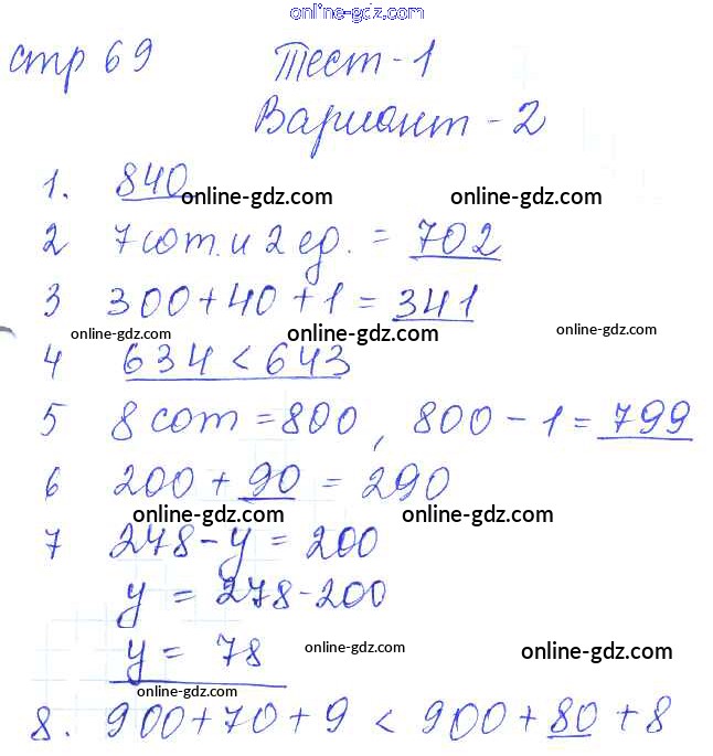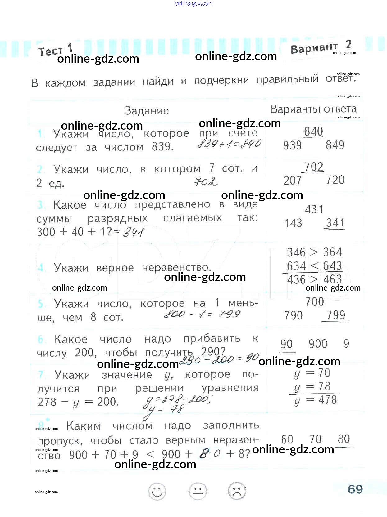 Готовые домашние задания по Математике за 3 класс Проверочные работы Волкова Школа России 2014 - Страницы 69