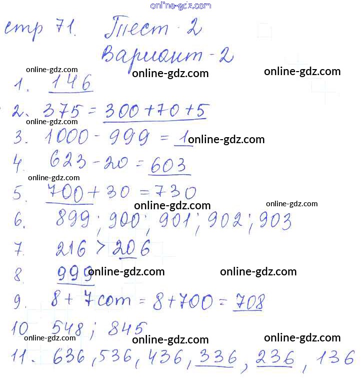 Готовые домашние задания по Математике за 3 класс Проверочные работы Волкова Школа России 2014 - Страницы 71