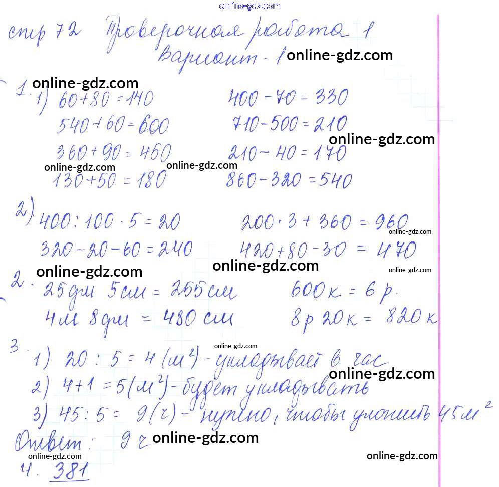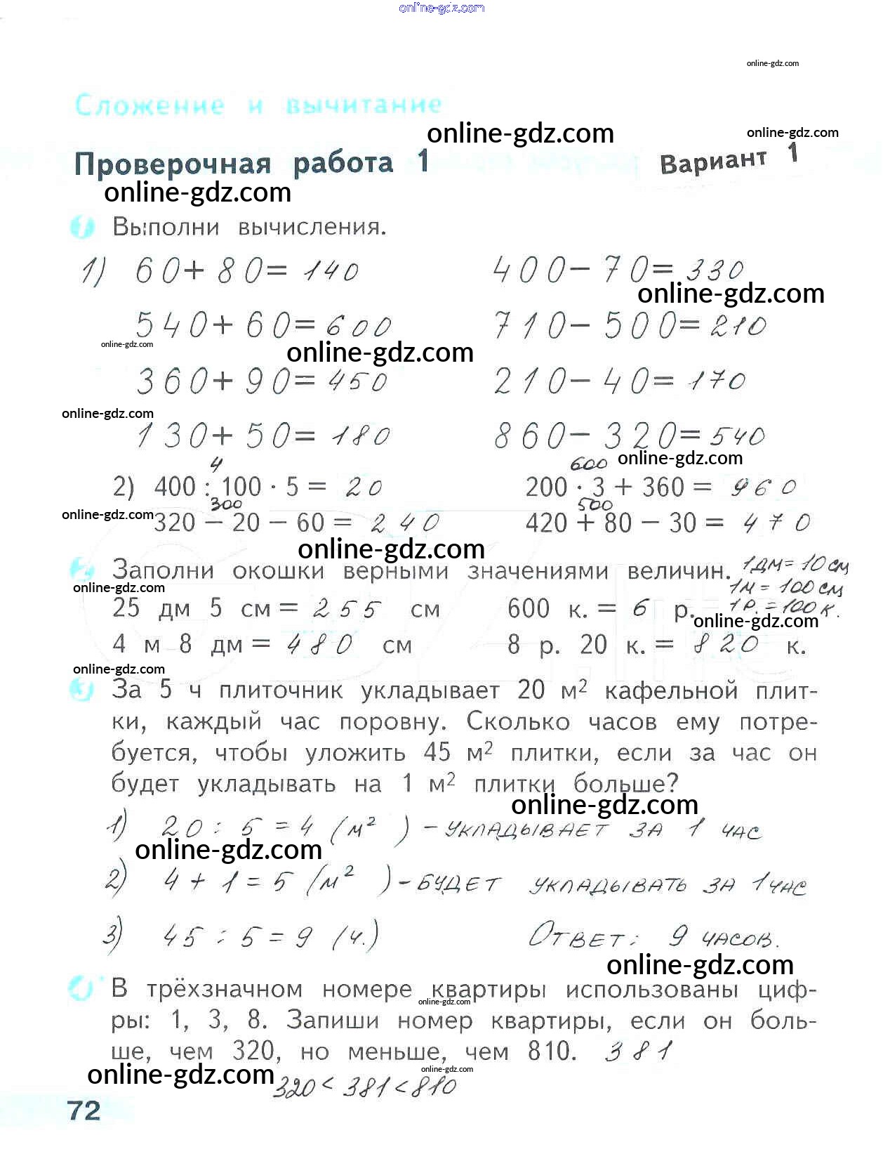 Готовые домашние задания по Математике за 3 класс Проверочные работы Волкова Школа России 2014 - Страницы 72