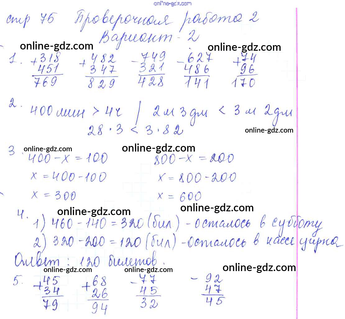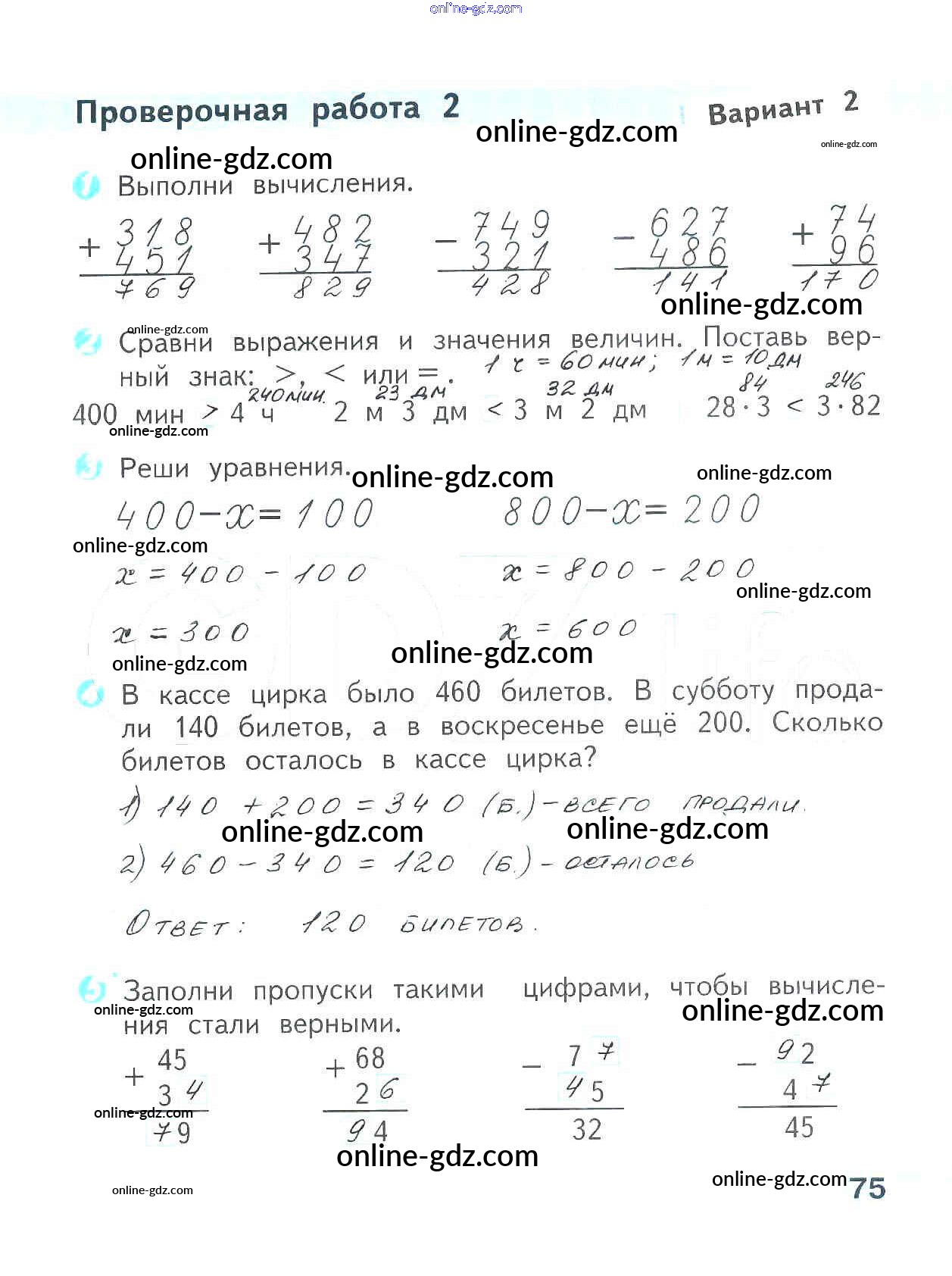 Готовые домашние задания по Математике за 3 класс Проверочные работы Волкова Школа России 2014 - Страницы 75