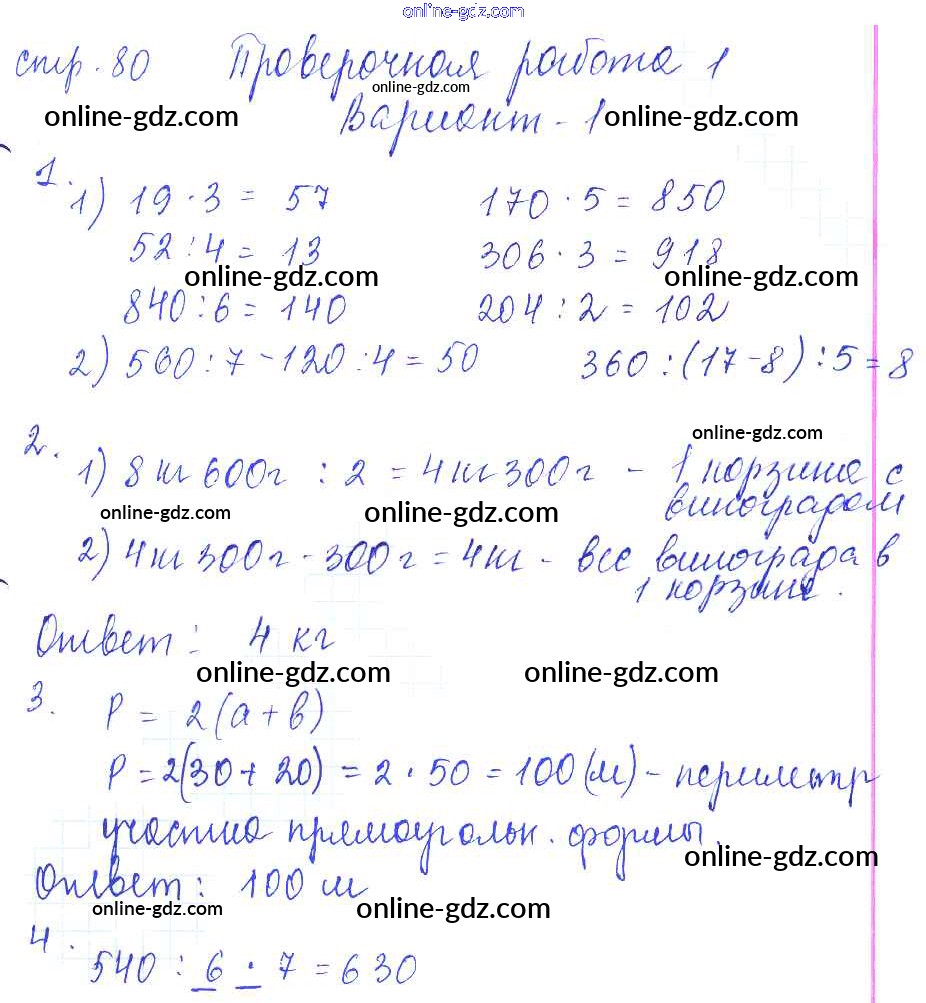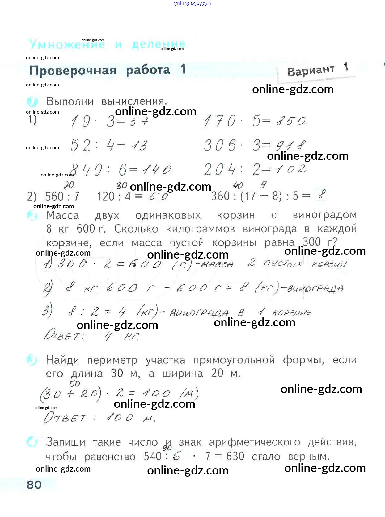 Готовые домашние задания по Математике за 3 класс Проверочные работы Волкова Школа России 2014 - Страницы 80
