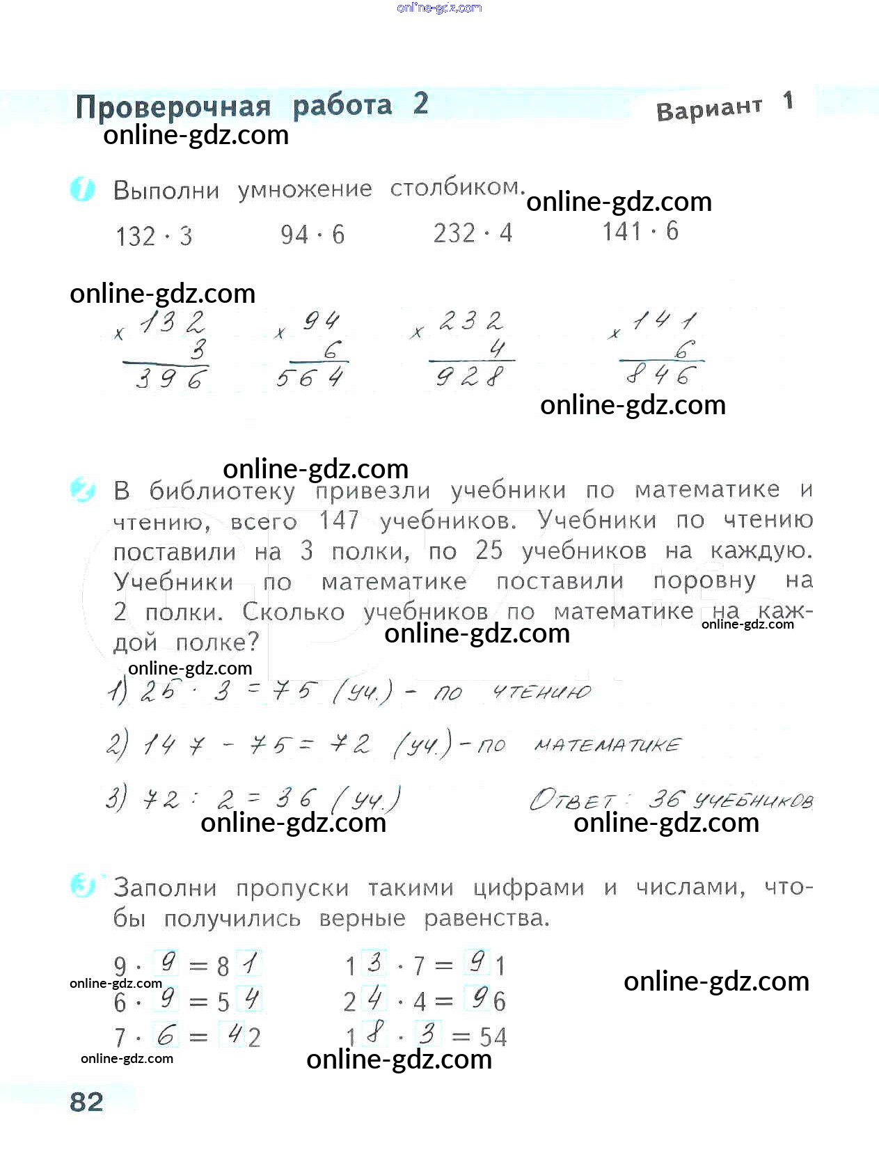 Готовые домашние задания по Математике за 3 класс Проверочные работы Волкова Школа России 2014 - Страницы 82