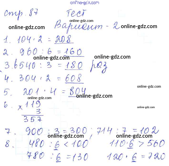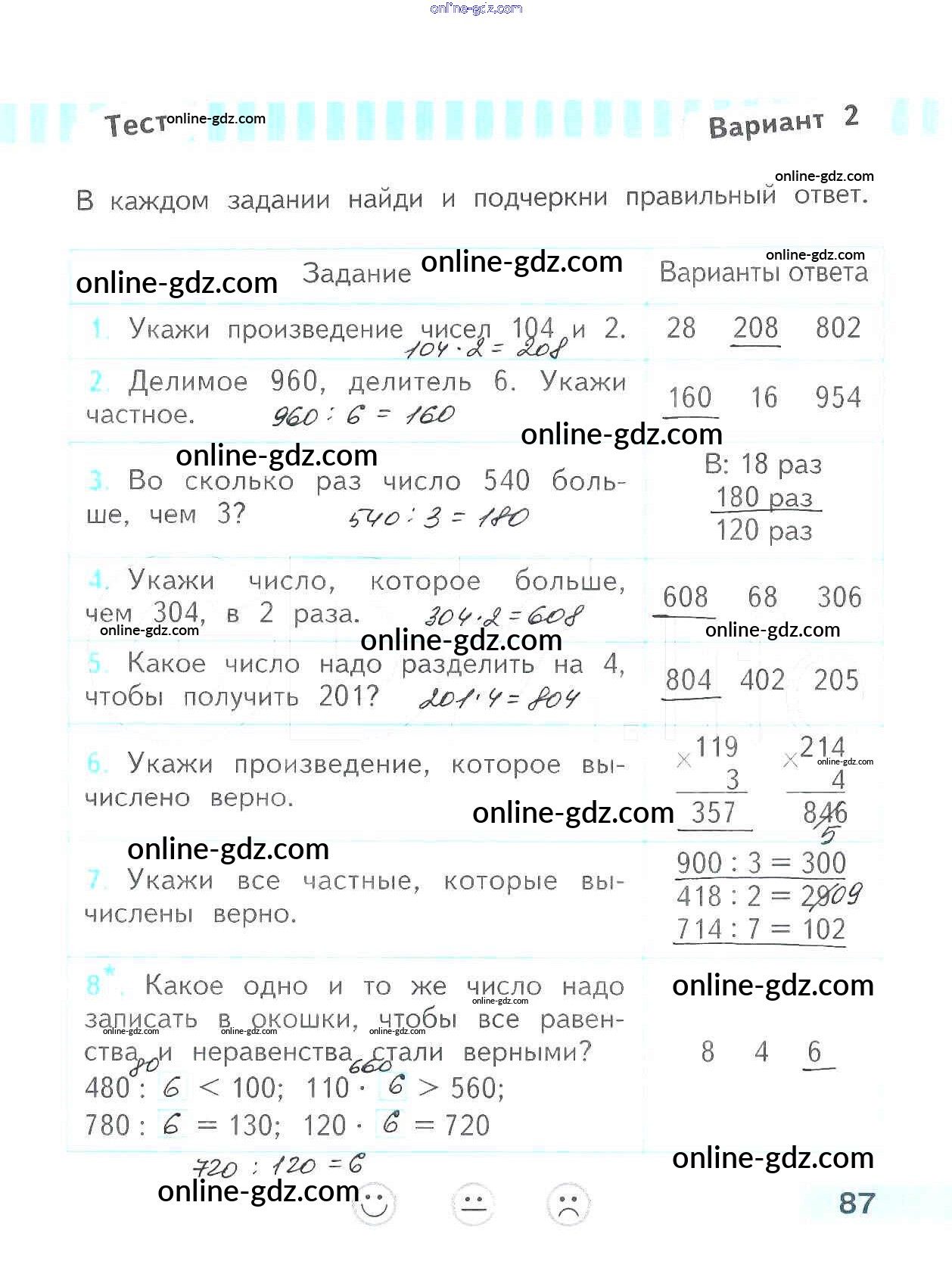 Готовые домашние задания по Математике за 3 класс Проверочные работы Волкова Школа России 2014 - Страницы 87