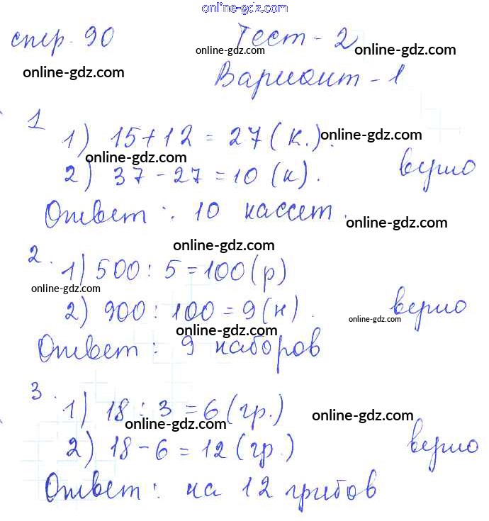 Готовые домашние задания по Математике за 3 класс Проверочные работы Волкова Школа России 2014 - Страницы 90