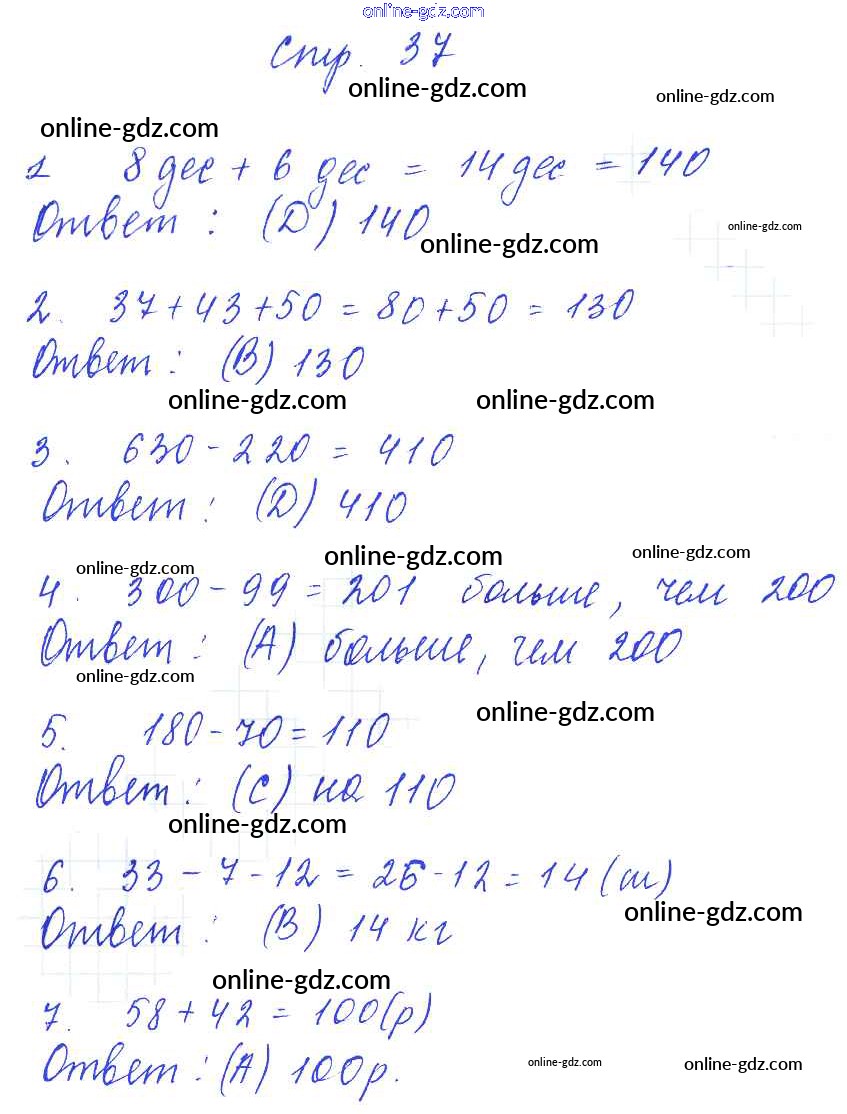 Готовые домашние задания по Математике за 3 класс Рабочая тетрадь Башмаков, Нефедова Планета знаний 2016 - Тетрадь №1. Страницы 37