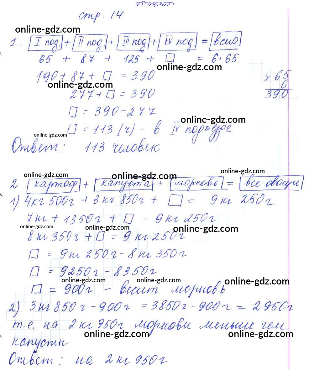 Готовые домашние задания по Математике за 3 класс Рабочая тетрадь Башмаков, Нефедова Планета знаний 2016 - Тетрадь №2. Страницы 14