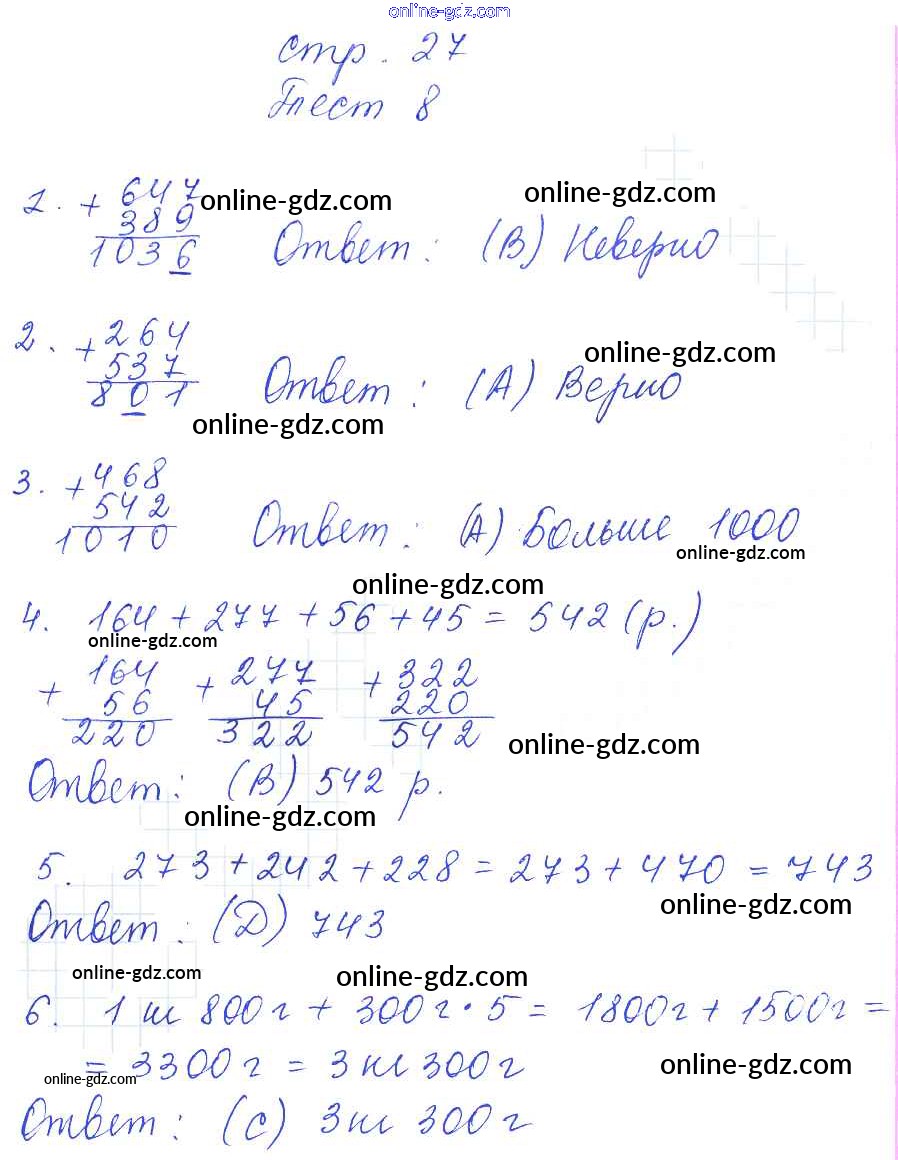 Готовые домашние задания по Математике за 3 класс Рабочая тетрадь Башмаков, Нефедова Планета знаний 2016 - Тетрадь №2. Страницы 27