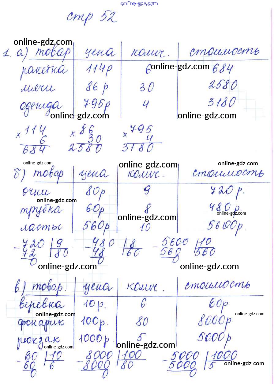 Готовые домашние задания по Математике за 3 класс Рабочая тетрадь Башмаков, Нефедова Планета знаний 2016 - Тетрадь №2. Страницы 52