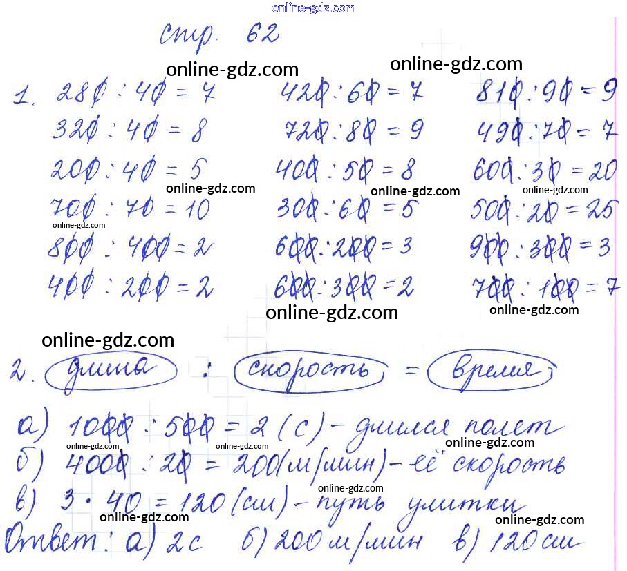 Готовые домашние задания по Математике за 3 класс Рабочая тетрадь Башмаков, Нефедова Планета знаний 2016 - Тетрадь №2. Страницы 62