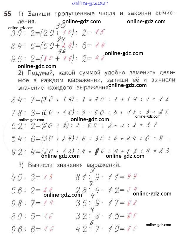 Готовые домашние задания по Математике за 3 класс Рабочая тетрадь Моро, Волкова Школа России 2016 - Страница 3-38 (Внетабличное умножение и деление) Часть 2 55