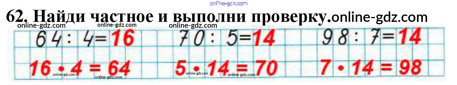 Готовые домашние задания по Математике за 3 класс Рабочая тетрадь Моро, Волкова Школа России 2016 - Страница 3-38 (Внетабличное умножение и деление) Часть 2 62