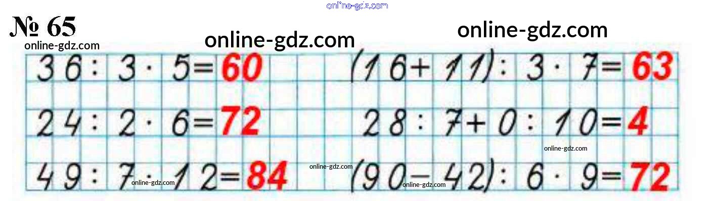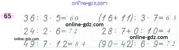 Готовые домашние задания по Математике за 3 класс Рабочая тетрадь Моро, Волкова Школа России 2016 - Страница 3-38 (Внетабличное умножение и деление) Часть 2 65