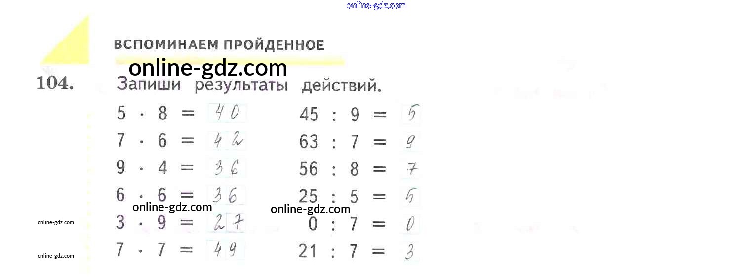 Готовые домашние задания по Математике за 3 класс Рабочая тетрадь Рудницкая, Юдачева Начальная школа XXI века 2017 - Часть 1 (упражнения) 104