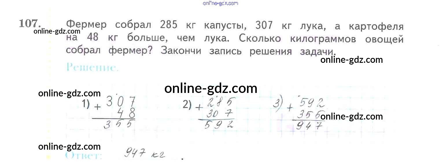 Готовые домашние задания по Математике за 3 класс Рабочая тетрадь Рудницкая, Юдачева Начальная школа XXI века 2017 - Часть 1 (упражнения) 107