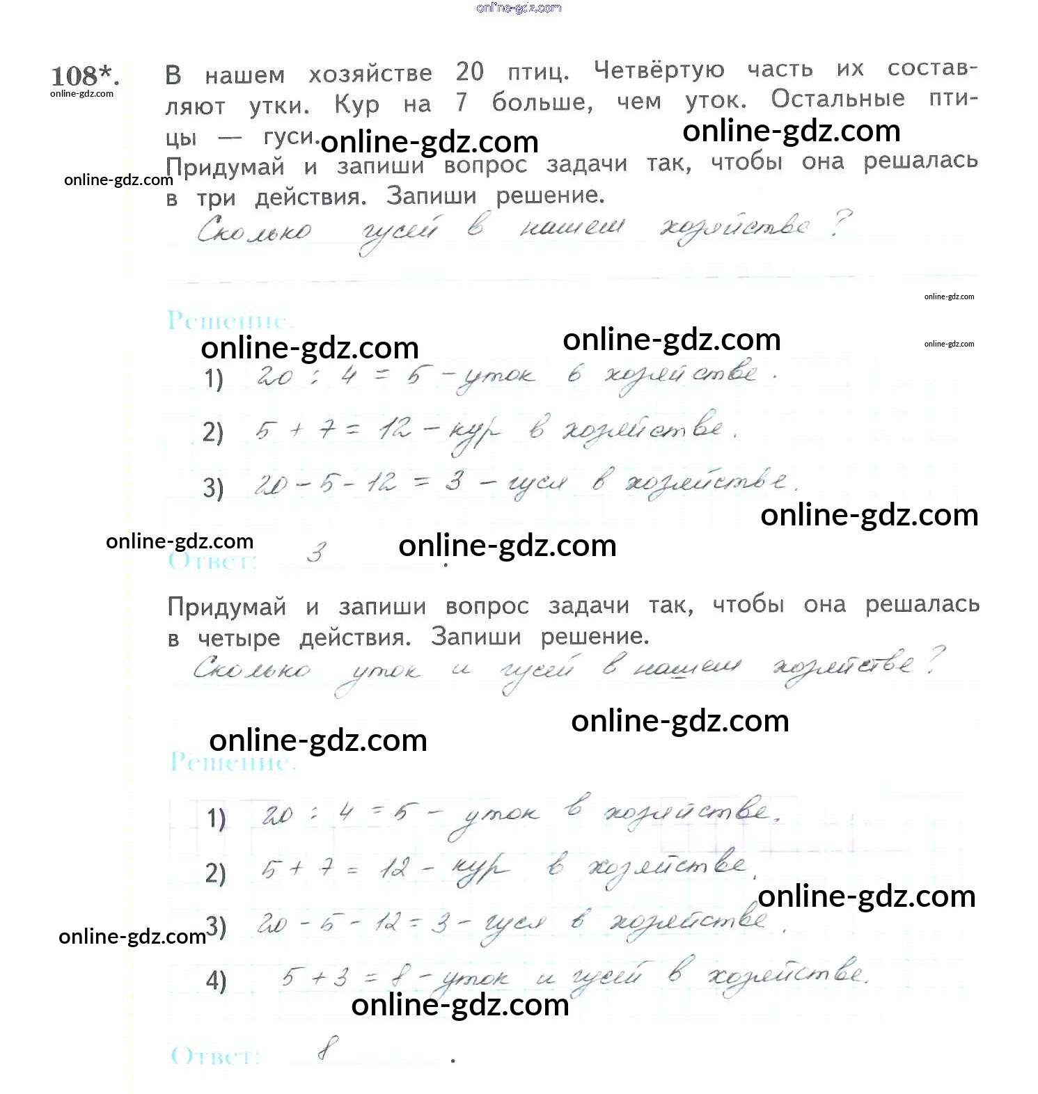 Готовые домашние задания по Математике за 3 класс Рабочая тетрадь Рудницкая, Юдачева Начальная школа XXI века 2017 - Часть 1 (упражнения) 108
