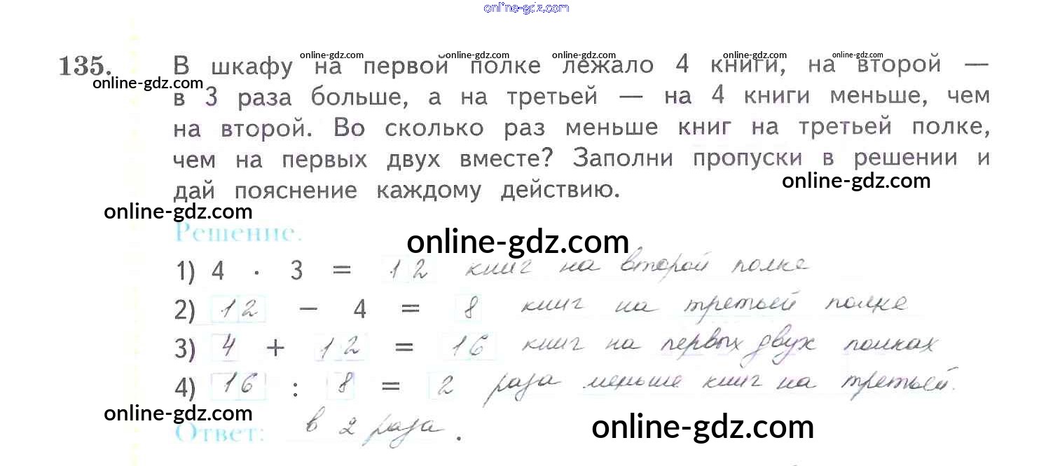Готовые домашние задания по Математике за 3 класс Рабочая тетрадь Рудницкая, Юдачева Начальная школа XXI века 2017 - Часть 1 (упражнения) 135