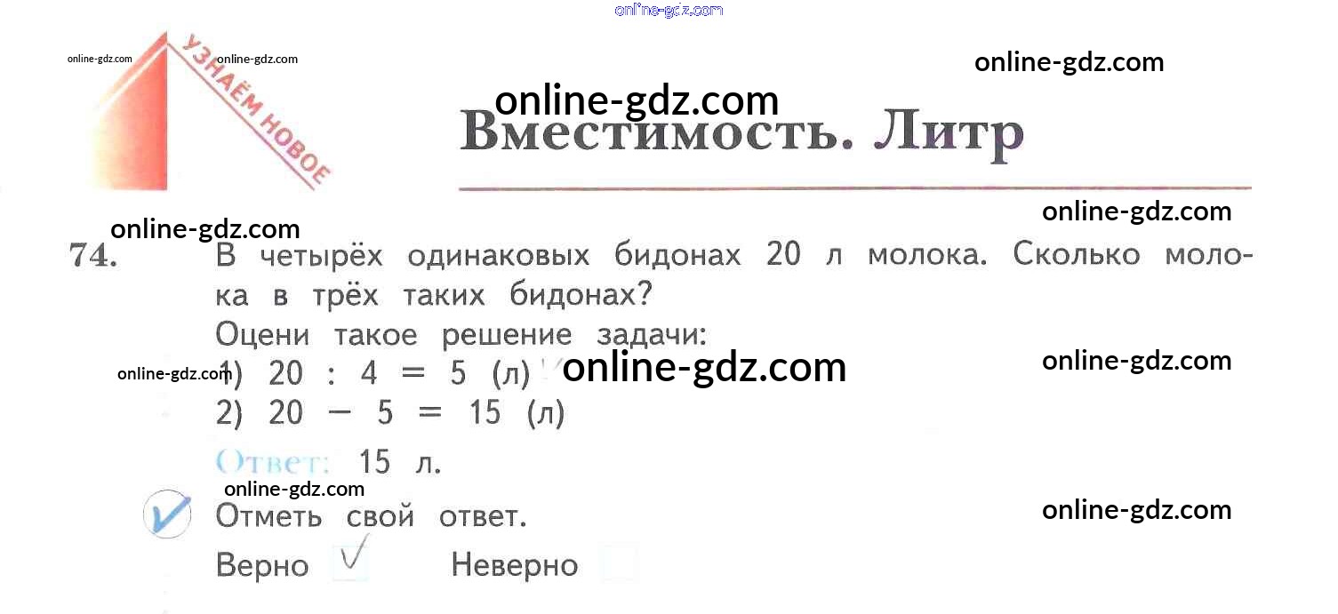 Готовые домашние задания по Математике за 3 класс Рабочая тетрадь Рудницкая, Юдачева Начальная школа XXI века 2017 - Часть 1 (упражнения) 74