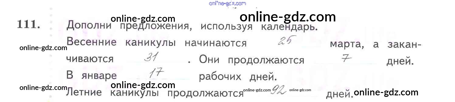 Готовые домашние задания по Математике за 3 класс Рабочая тетрадь Рудницкая, Юдачева Начальная школа XXI века 2017 - Часть 2 (упражнения) 111