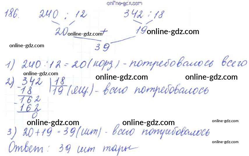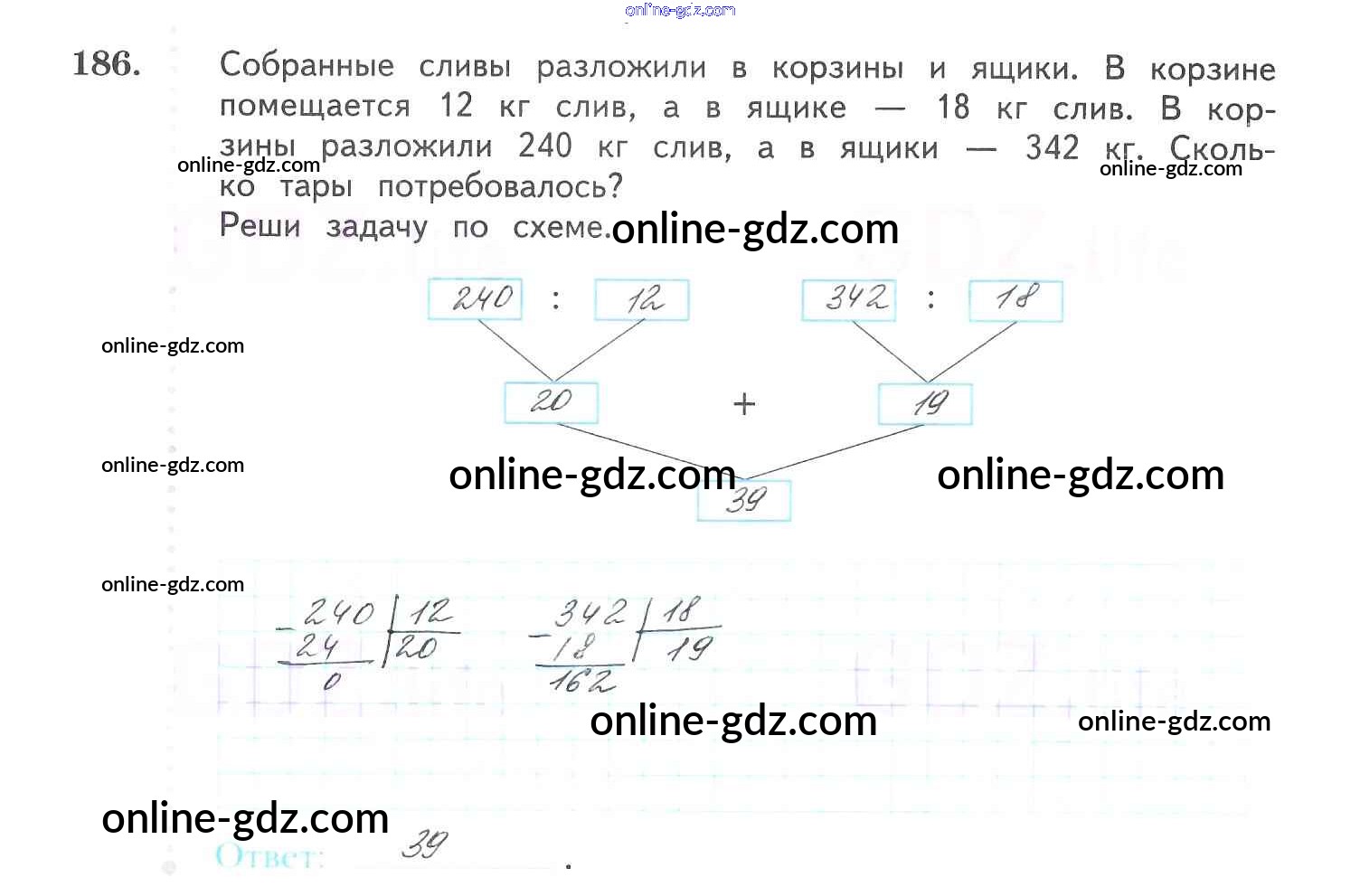 Готовые домашние задания по Математике за 3 класс Рабочая тетрадь Рудницкая, Юдачева Начальная школа XXI века 2017 - Часть 2 (упражнения) 186