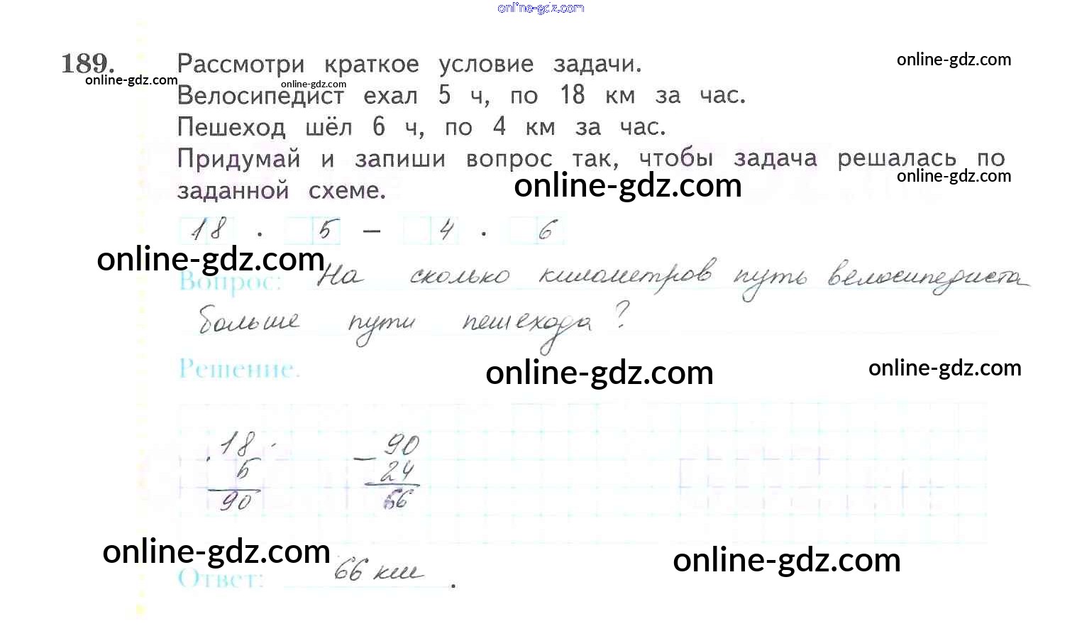 Готовые домашние задания по Математике за 3 класс Рабочая тетрадь Рудницкая, Юдачева Начальная школа XXI века 2017 - Часть 2 (упражнения) 189