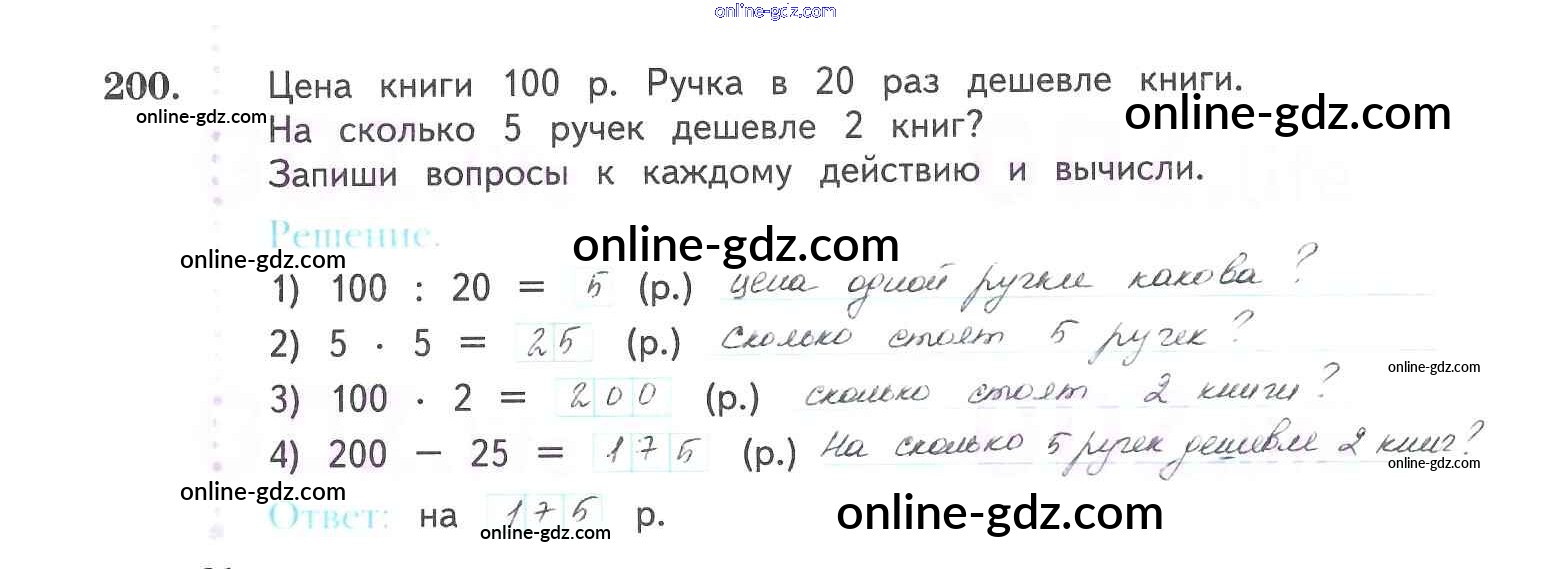 Готовые домашние задания по Математике за 3 класс Рабочая тетрадь Рудницкая, Юдачева Начальная школа XXI века 2017 - Часть 2 (упражнения) 200