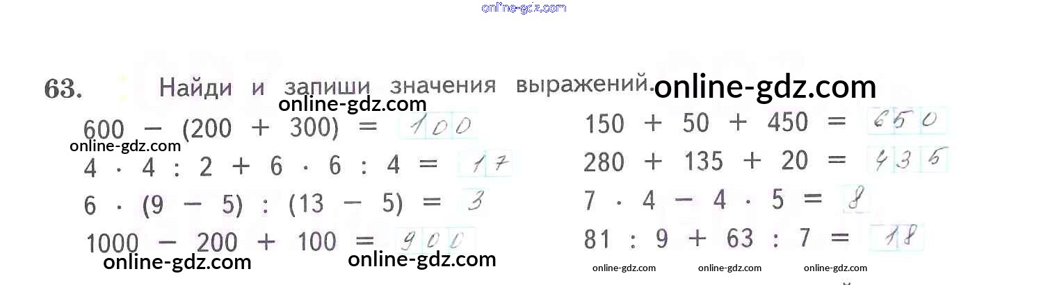 Готовые домашние задания по Математике за 3 класс Рабочая тетрадь Рудницкая, Юдачева Начальная школа XXI века 2017 - Часть 2 (упражнения) 63
