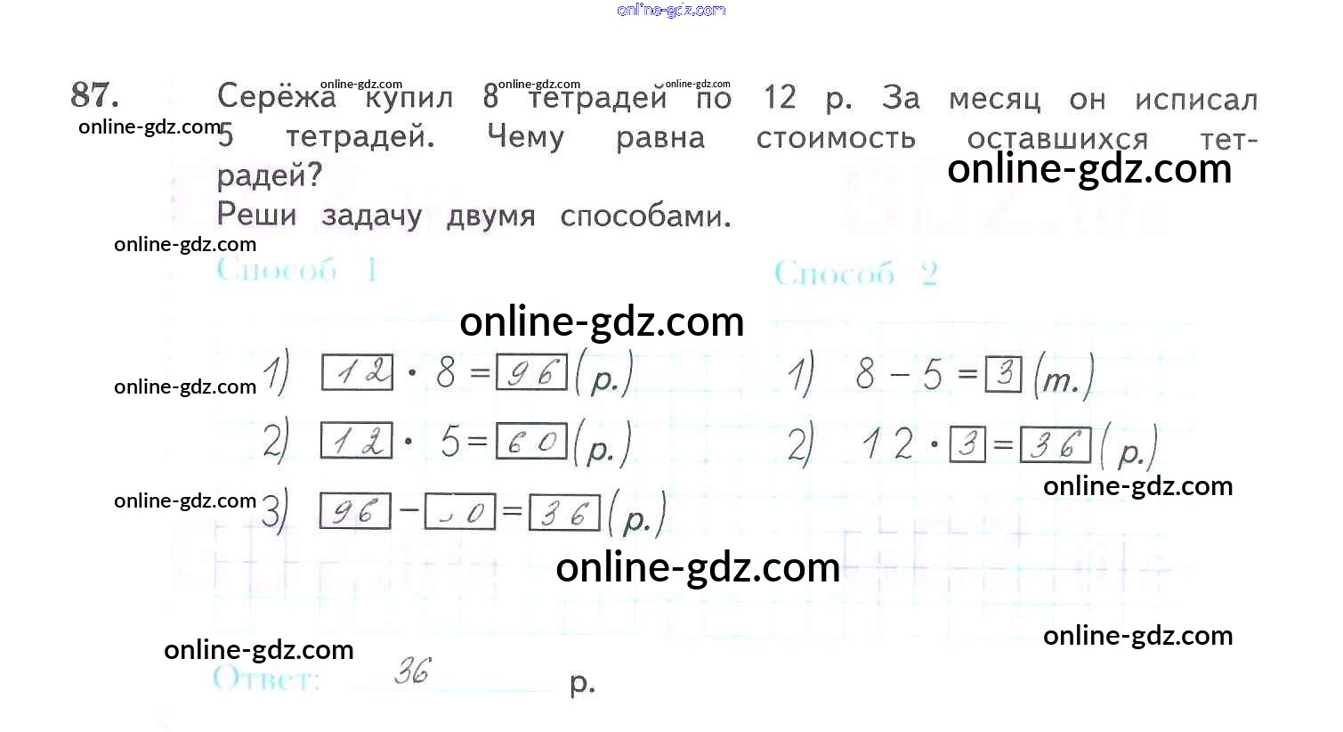 Готовые домашние задания по Математике за 3 класс Рабочая тетрадь Рудницкая, Юдачева Начальная школа XXI века 2017 - Часть 2 (упражнения) 87