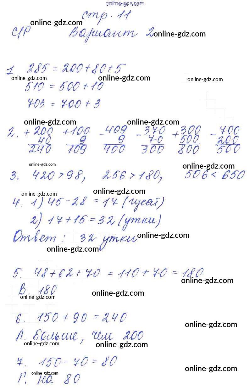 Готовые домашние задания по Математике за 3 класс Тесты и самостоятельные работы для текущего контроля Нефедова Планета знаний 2017 - Страницы 11