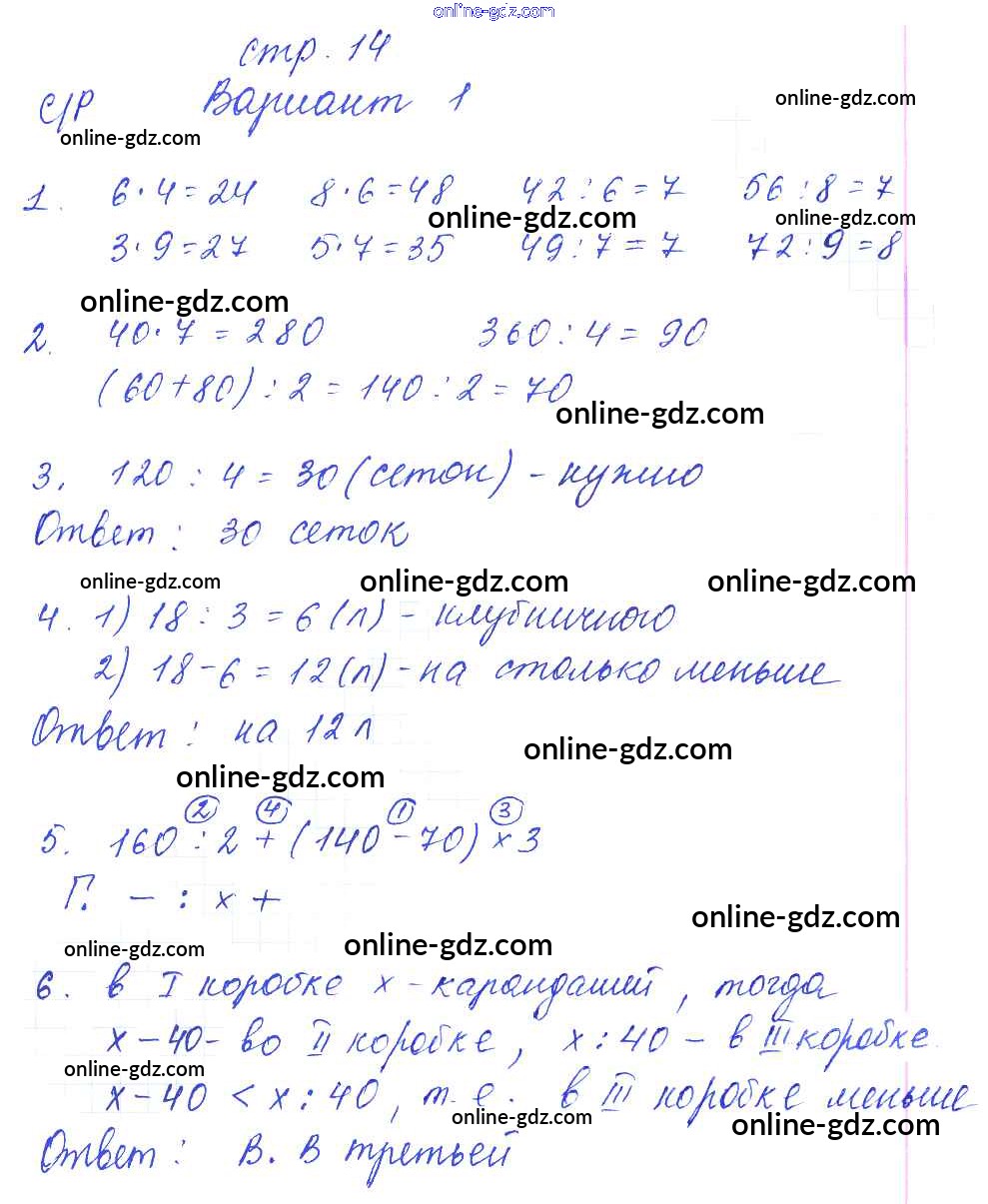 Готовые домашние задания по Математике за 3 класс Тесты и самостоятельные работы для текущего контроля Нефедова Планета знаний 2017 - Страницы 14