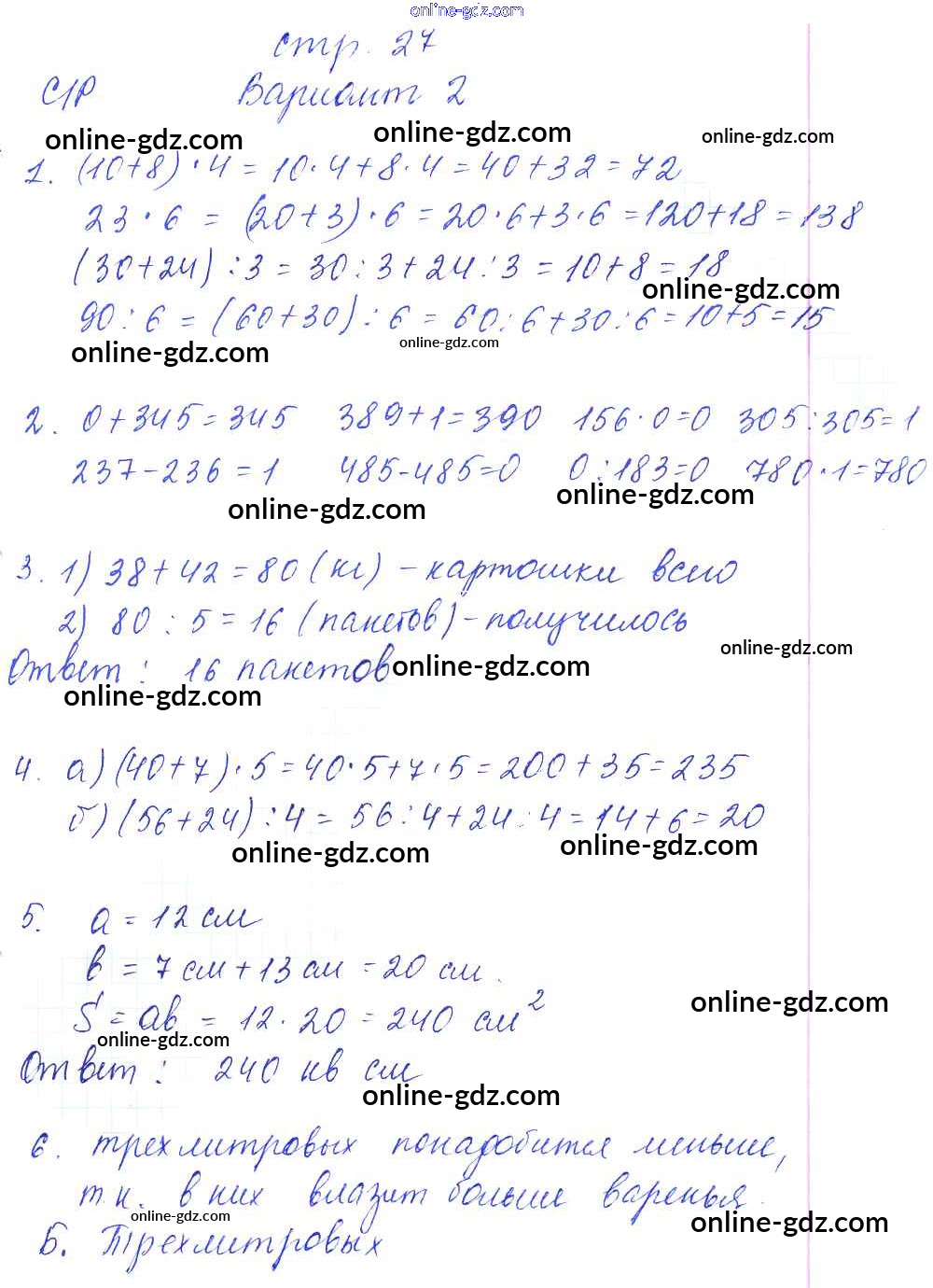 Готовые домашние задания по Математике за 3 класс Тесты и самостоятельные работы для текущего контроля Нефедова Планета знаний 2017 - Страницы 27