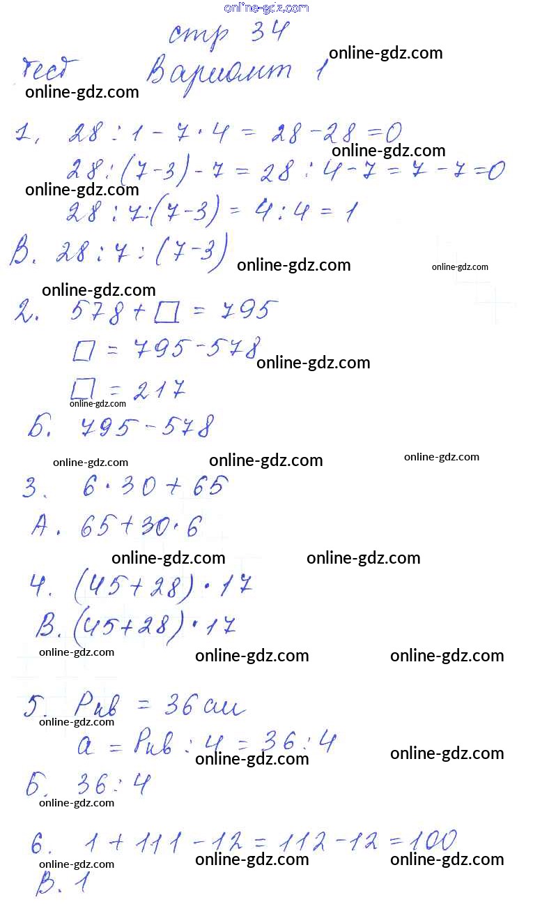 Готовые домашние задания по Математике за 3 класс Тесты и самостоятельные работы для текущего контроля Нефедова Планета знаний 2017 - Страницы 34
