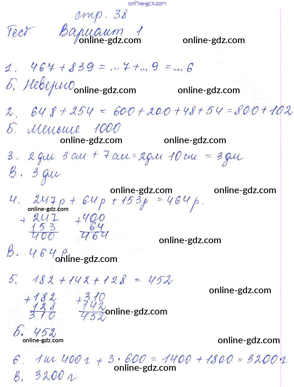 Готовые домашние задания по Математике за 3 класс Тесты и самостоятельные работы для текущего контроля Нефедова Планета знаний 2017 - Страницы 38