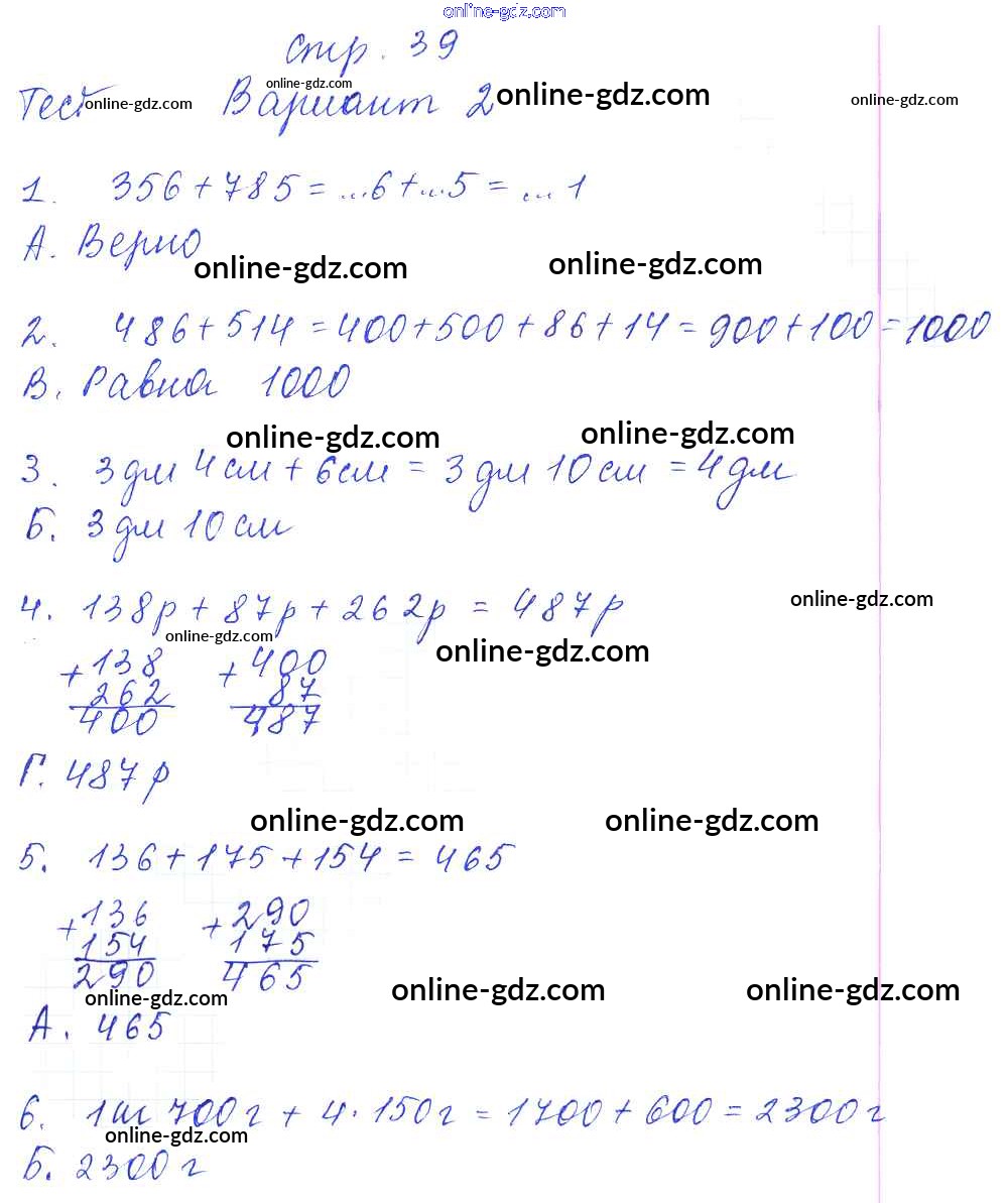 Готовые домашние задания по Математике за 3 класс Тесты и самостоятельные работы для текущего контроля Нефедова Планета знаний 2017 - Страницы 39