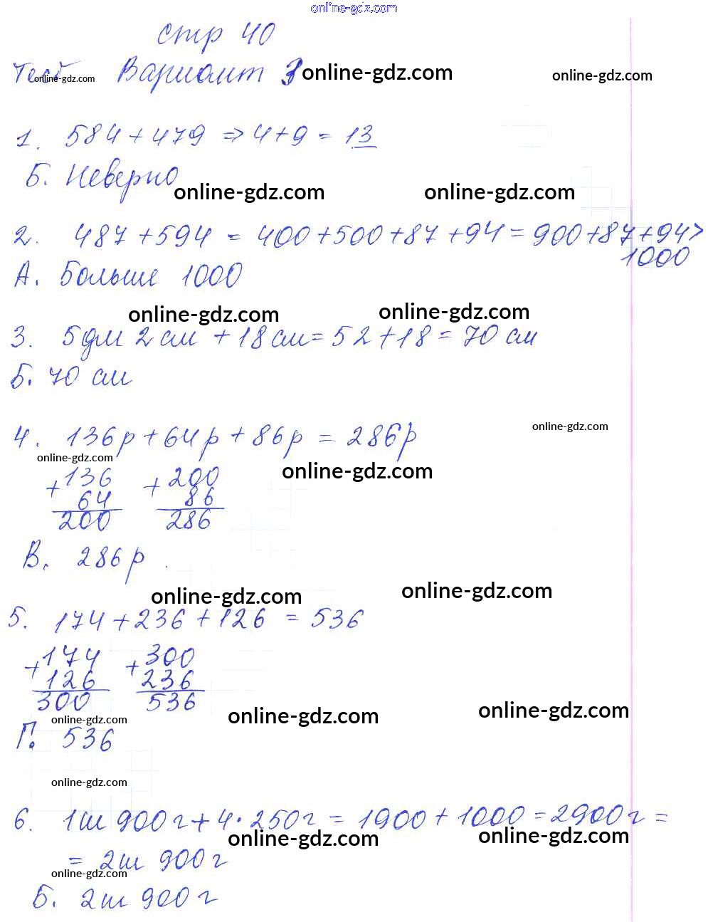 Готовые домашние задания по Математике за 3 класс Тесты и самостоятельные работы для текущего контроля Нефедова Планета знаний 2017 - Страницы 40