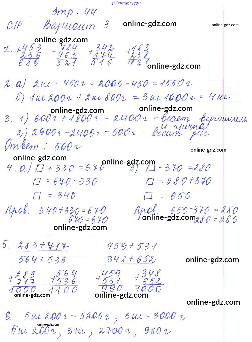 Готовые домашние задания по Математике за 3 класс Тесты и самостоятельные работы для текущего контроля Нефедова Планета знаний 2017 - Страницы 44