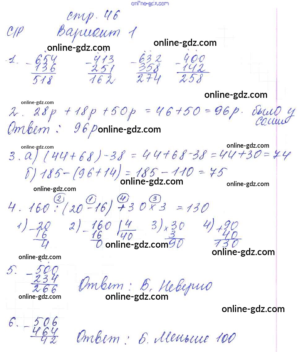 Готовые домашние задания по Математике за 3 класс Тесты и самостоятельные работы для текущего контроля Нефедова Планета знаний 2017 - Страницы 46