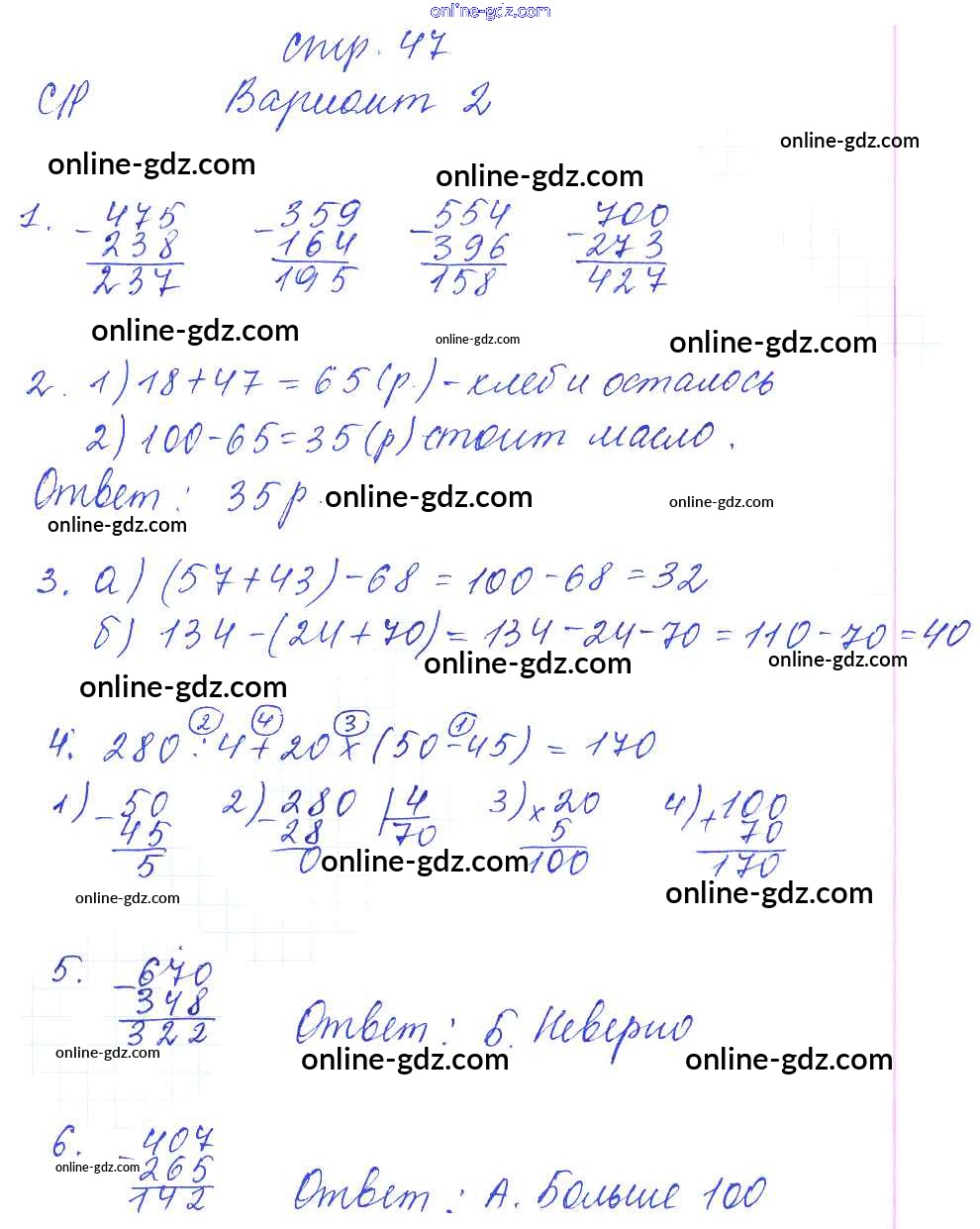 Готовые домашние задания по Математике за 3 класс Тесты и самостоятельные работы для текущего контроля Нефедова Планета знаний 2017 - Страницы 47