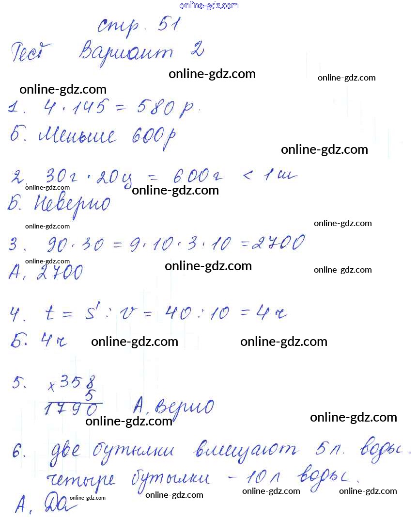 Готовые домашние задания по Математике за 3 класс Тесты и самостоятельные работы для текущего контроля Нефедова Планета знаний 2017 - Страницы 51